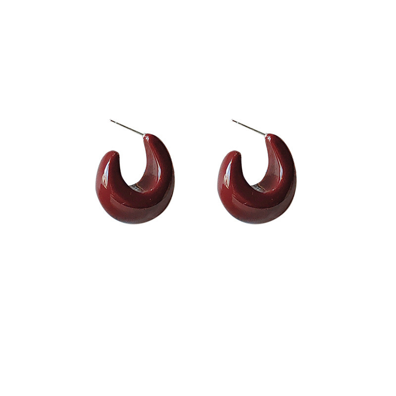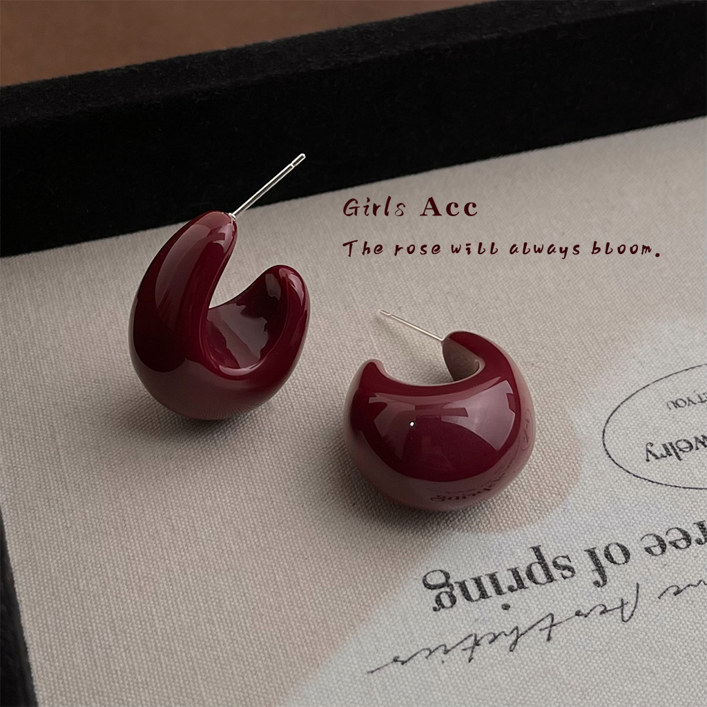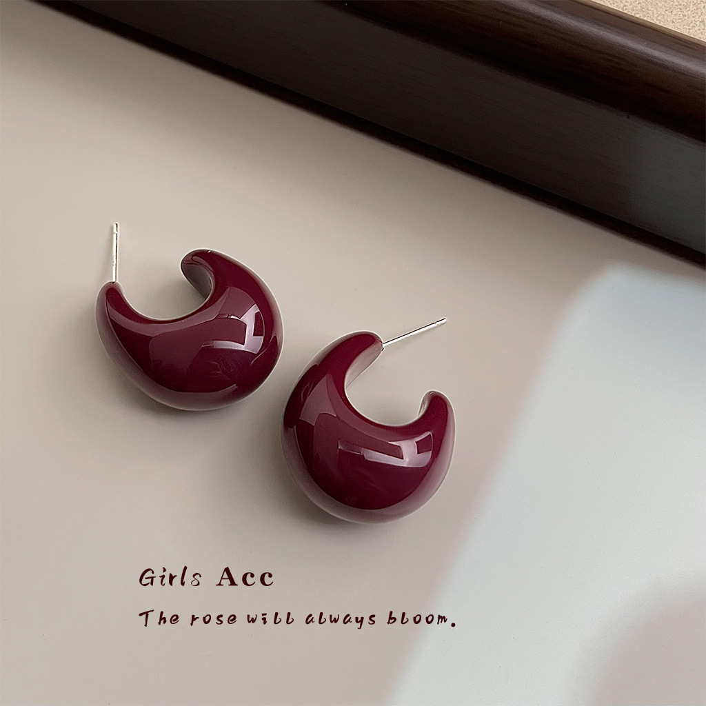 文艺复古红棕水滴形耳环港风气质酒红耳钉银针法式高级感显白耳饰
