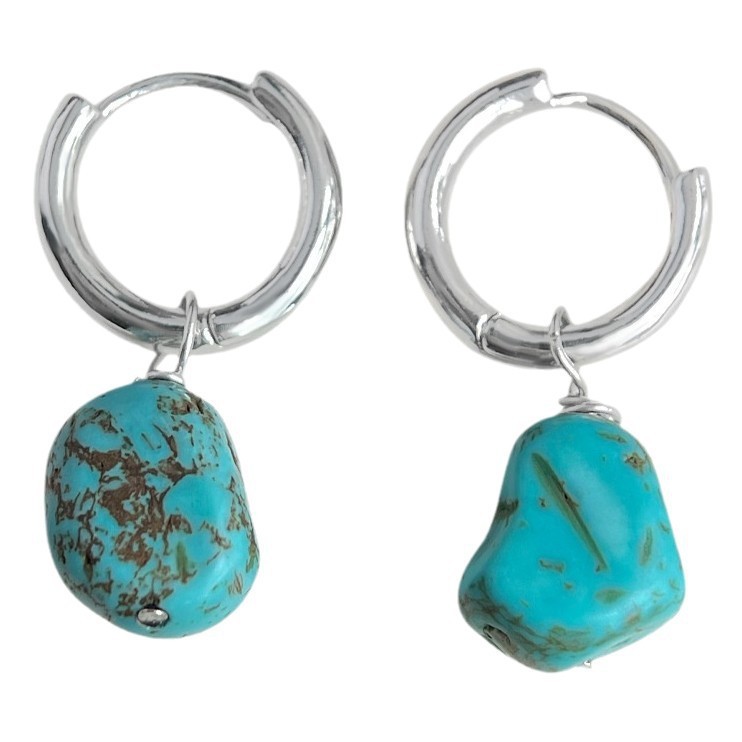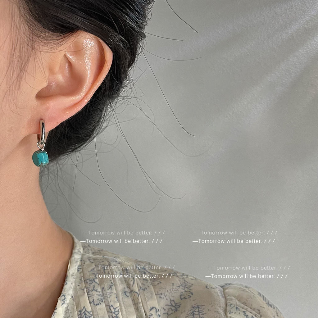 个性不规则绿松石耳环女手作设计感天然石耳钉时尚冷淡风耳饰批发