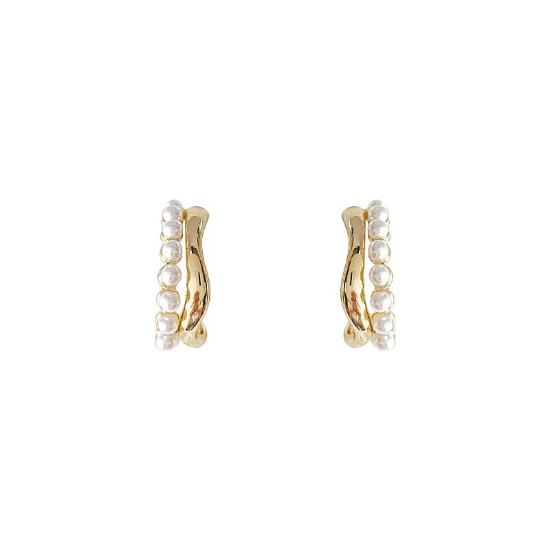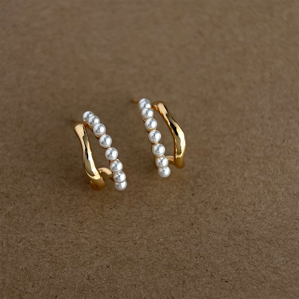 简约百搭双层C形珍珠耳钉女银针韩系小众时尚高级感耳环耳饰批发