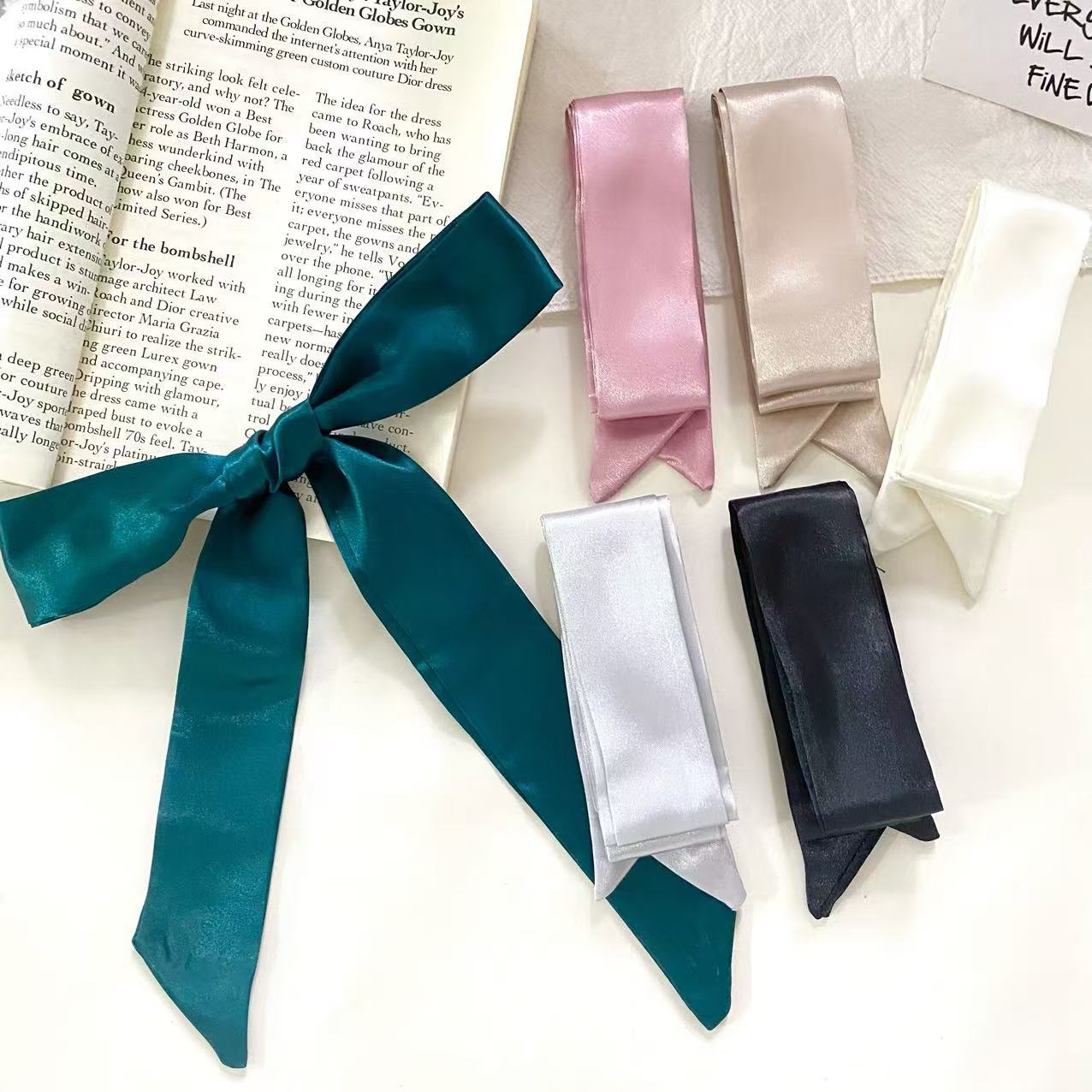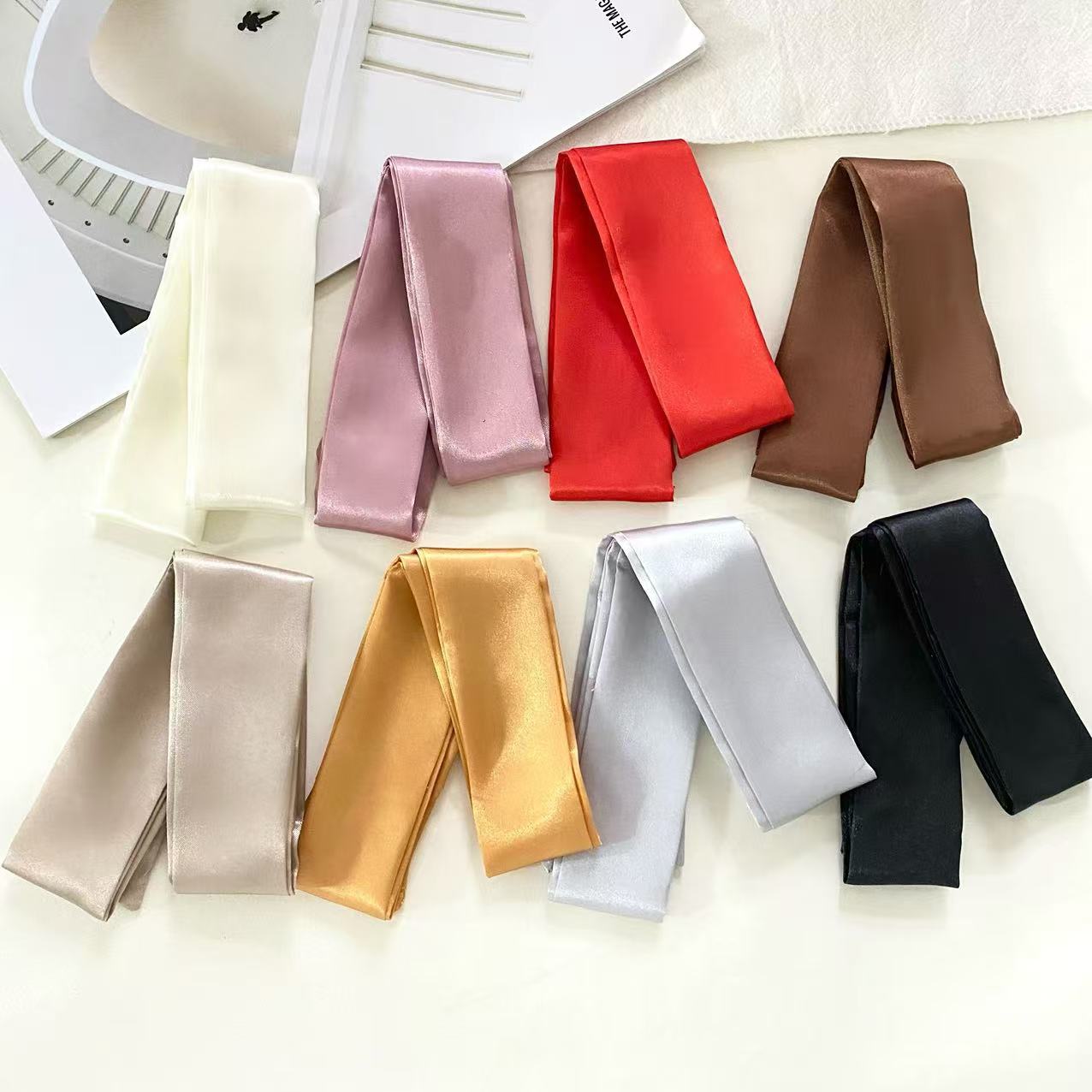 缎面纯色细长窄丝巾飘带绑包包手柄丝巾绑发丝带装饰领巾衬衫配饰