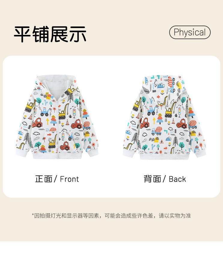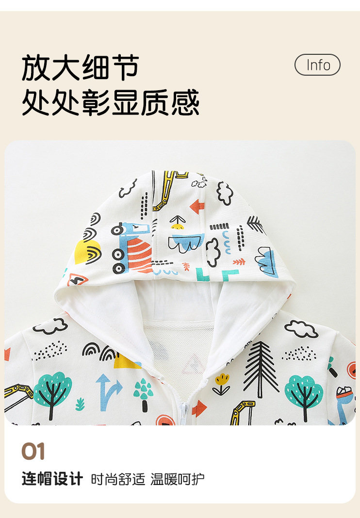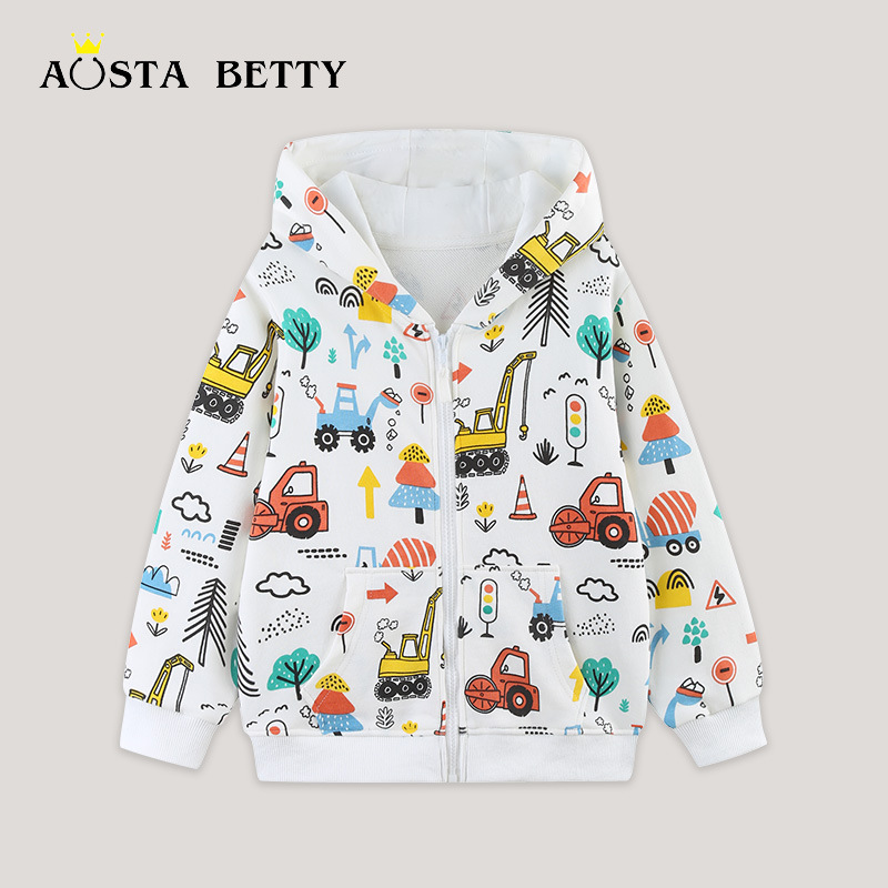 跨境货源欧美风时尚男童连帽外套25秋季新款可爱印花儿童拉链卫衣