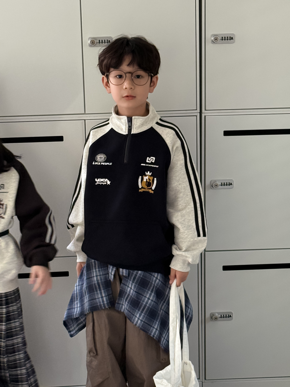 童卫衣2025秋季男女童美式拉链字母上衣儿童立领休闲POLO衫末小蒙