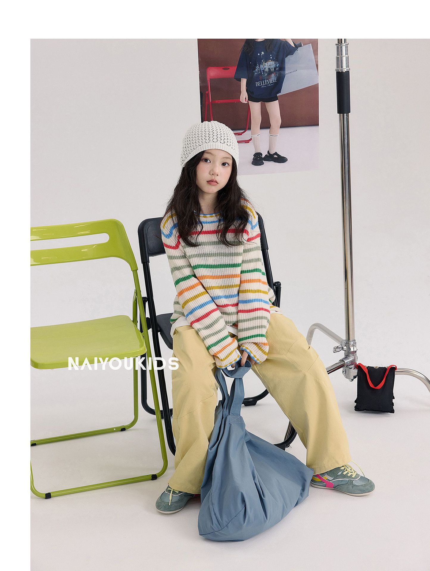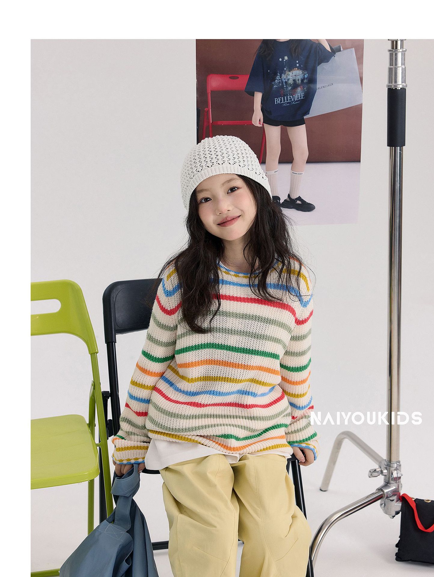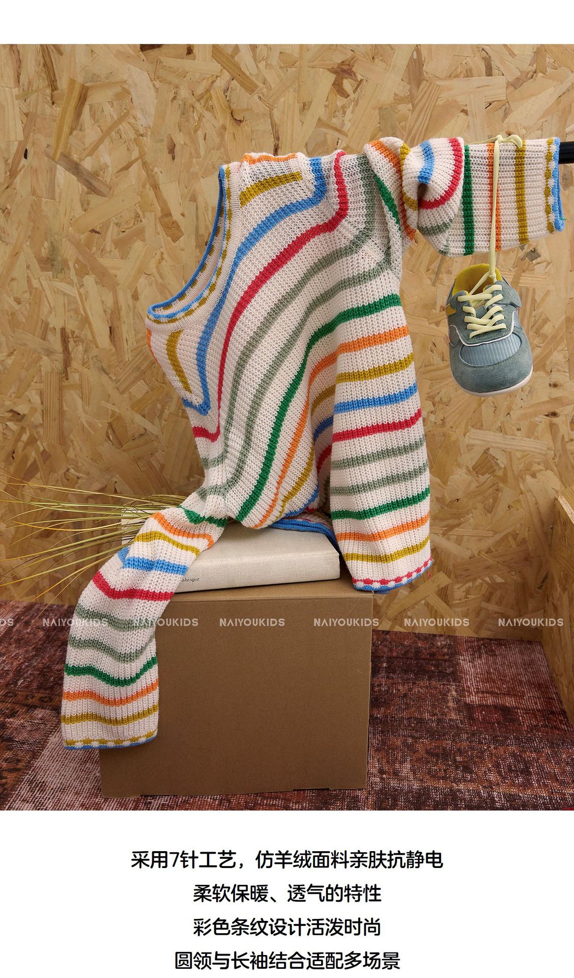 童装女童彩虹条纹毛衣2025春秋季新款韩版小女孩长袖儿童针织衫潮