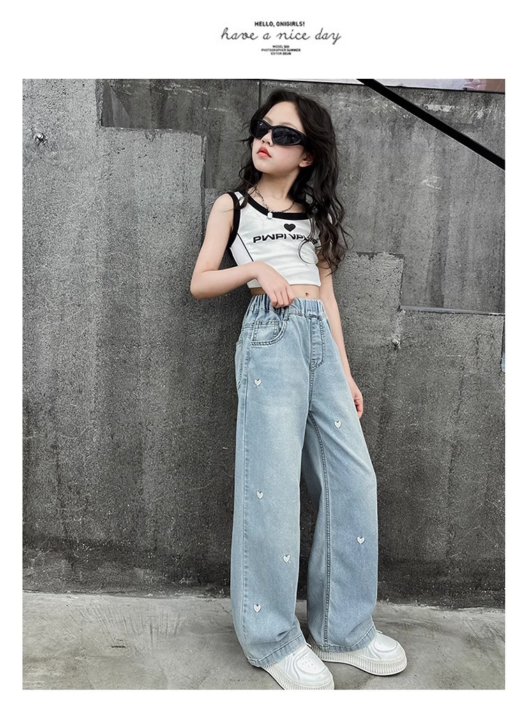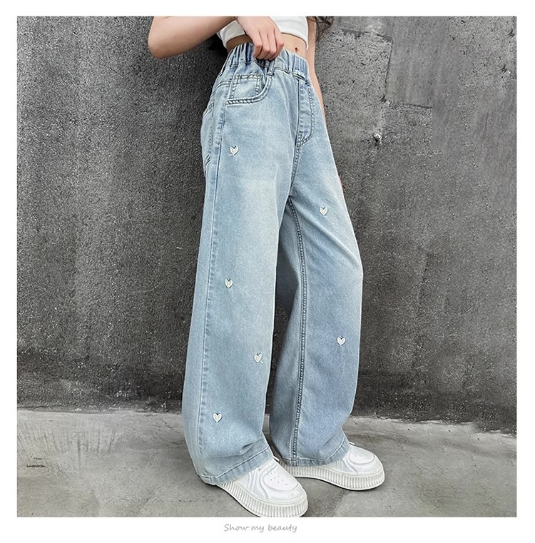 女童冰丝裤子夏季薄款大童夏装宽松阔腿裤休闲百搭洋气爆款牛仔裤