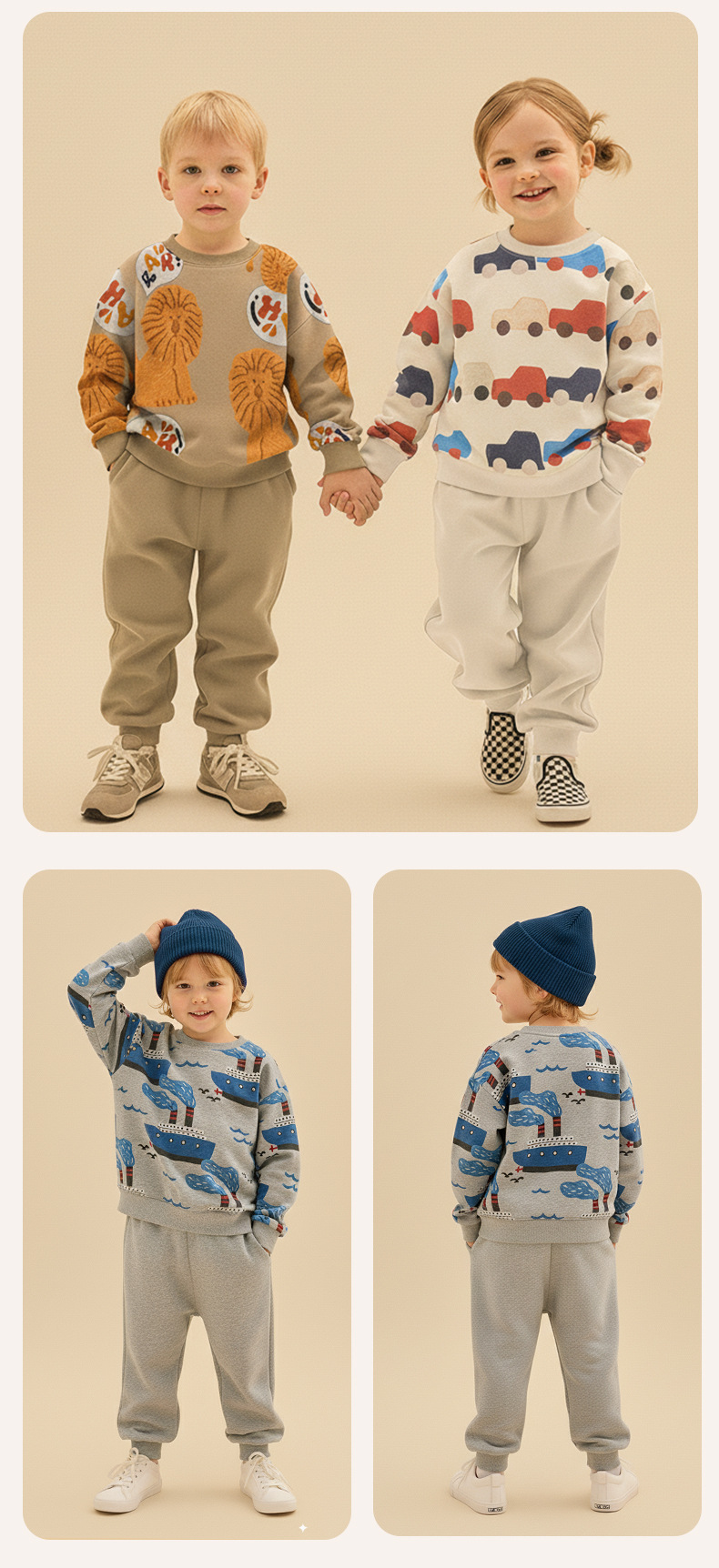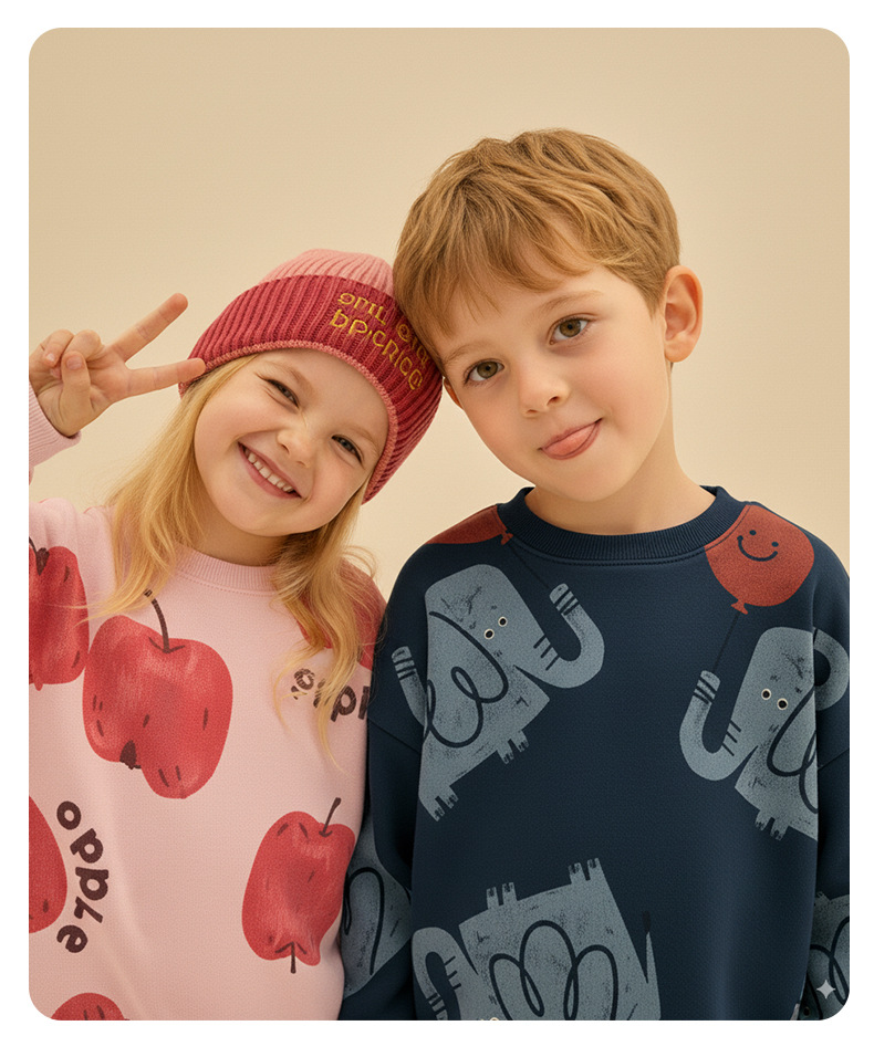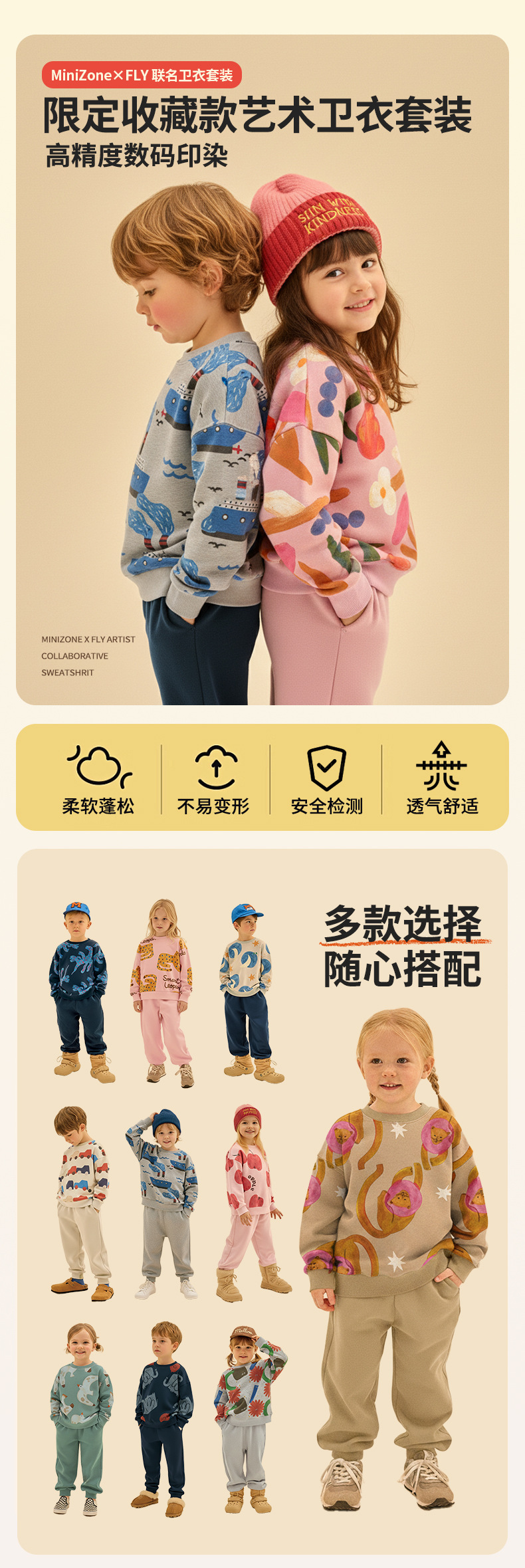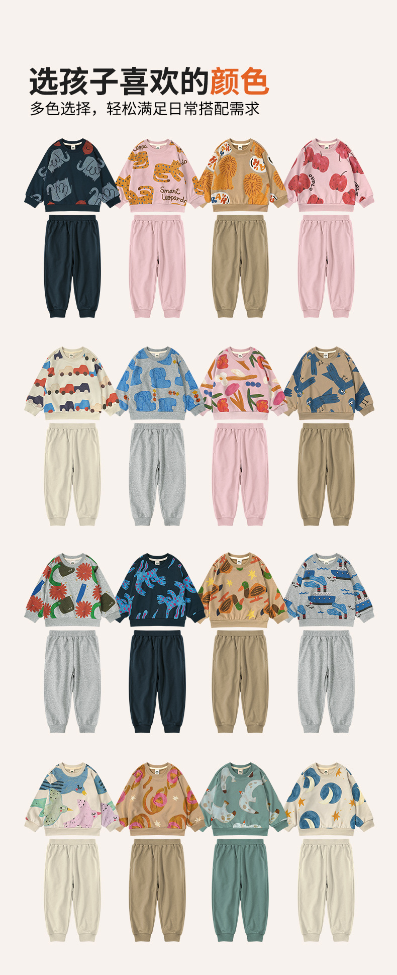 minizone儿童卫衣2025秋装女童卫衣秋线圈男童裤子套装宝宝服装