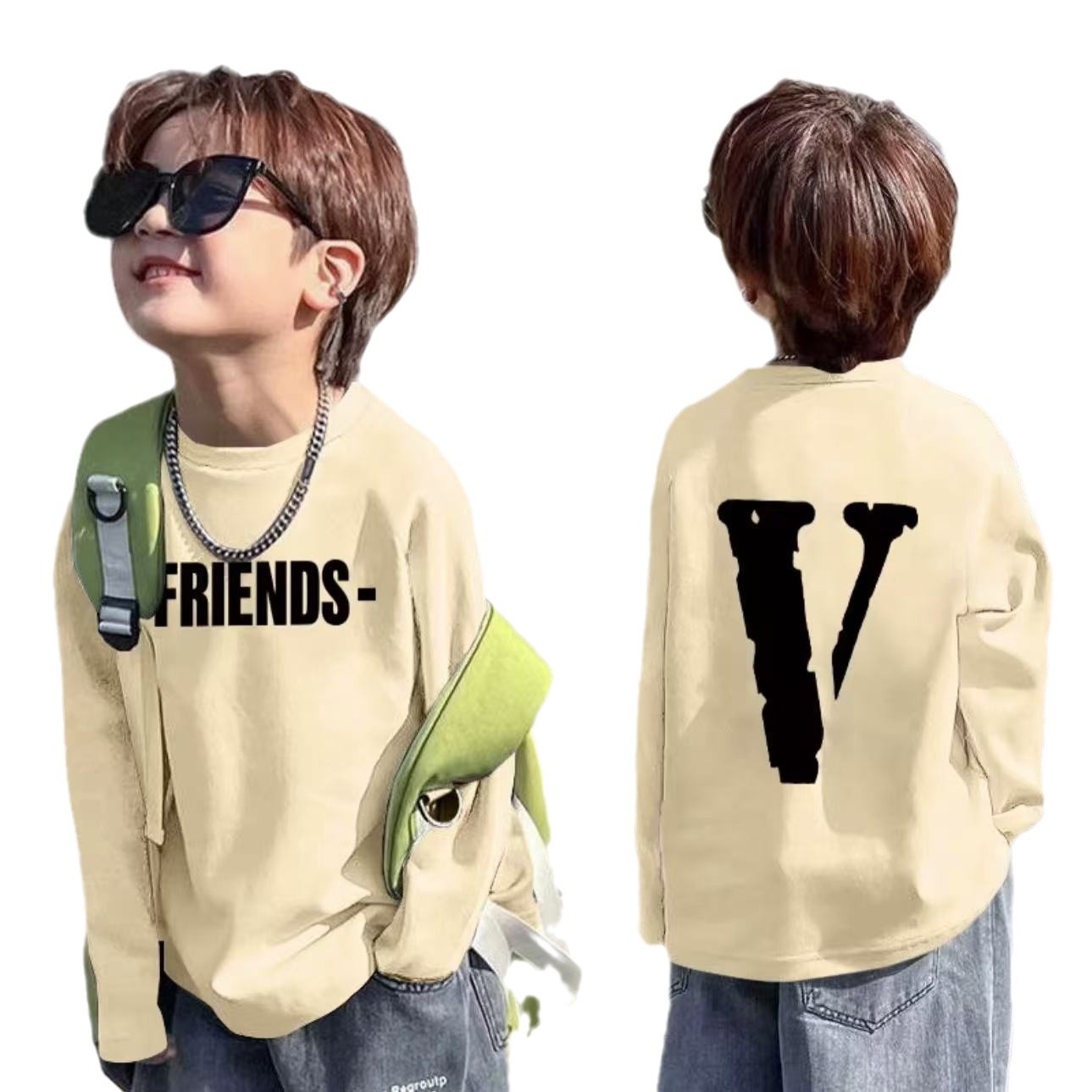 春秋新款100%纯棉儿童百搭长袖T恤男童潮流字母印花圆领打底上衣