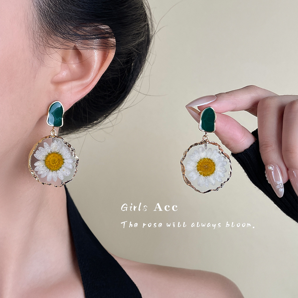 超仙的!永生花雏菊干花花朵耳环女高级感时尚小众气质耳饰批发