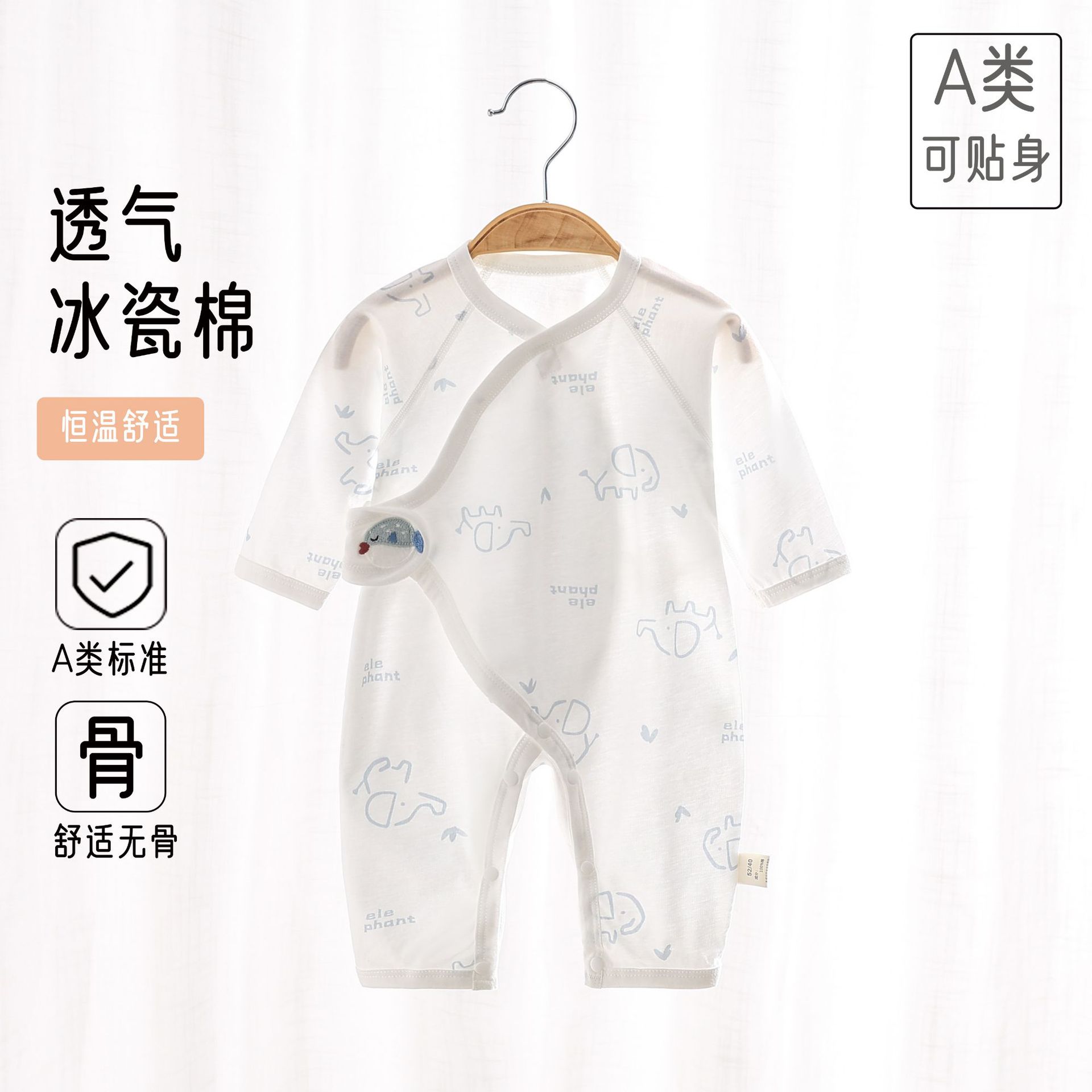 夏季新生儿连体衣婴儿纯棉薄款无骨衣服哈衣长袖宝宝夏款空调服