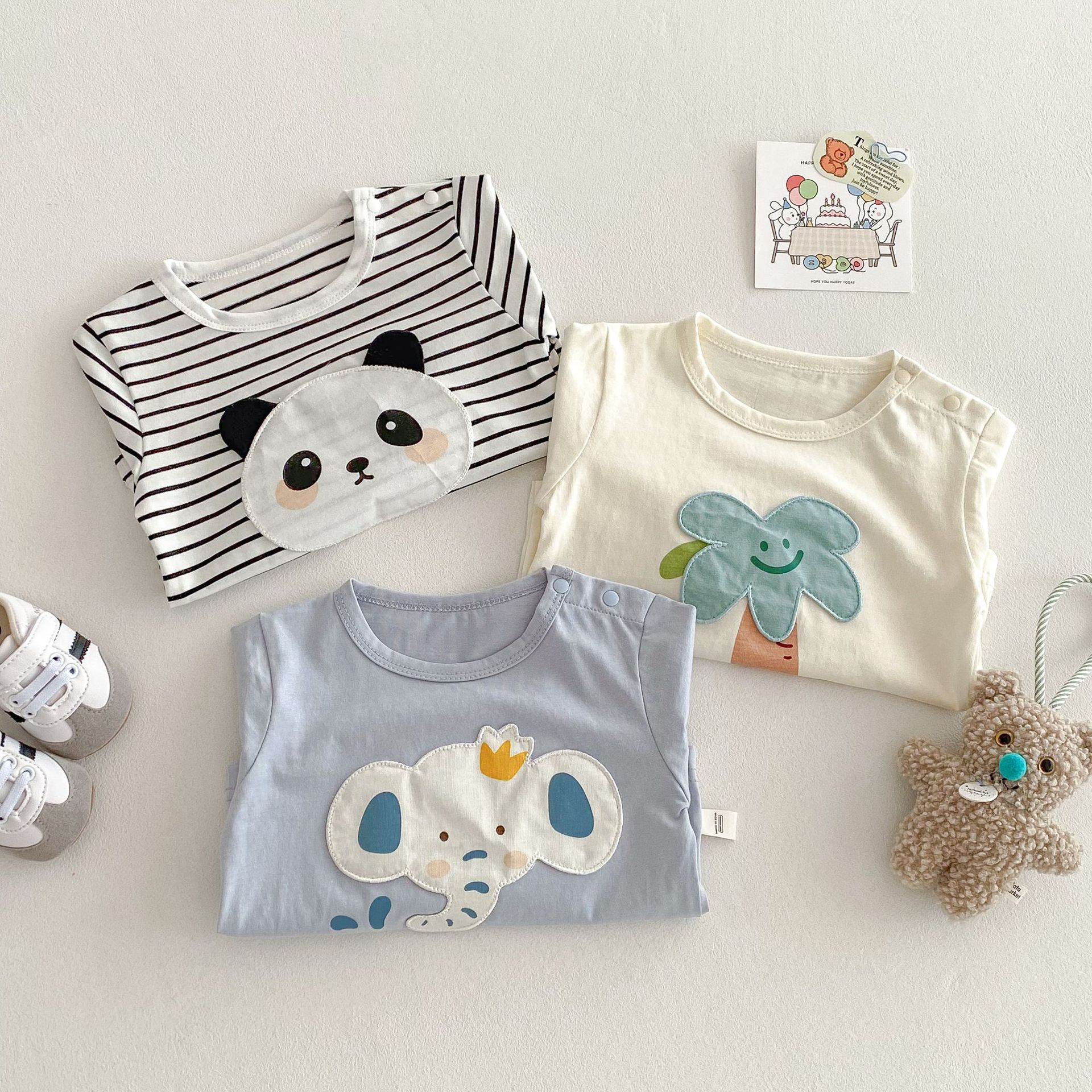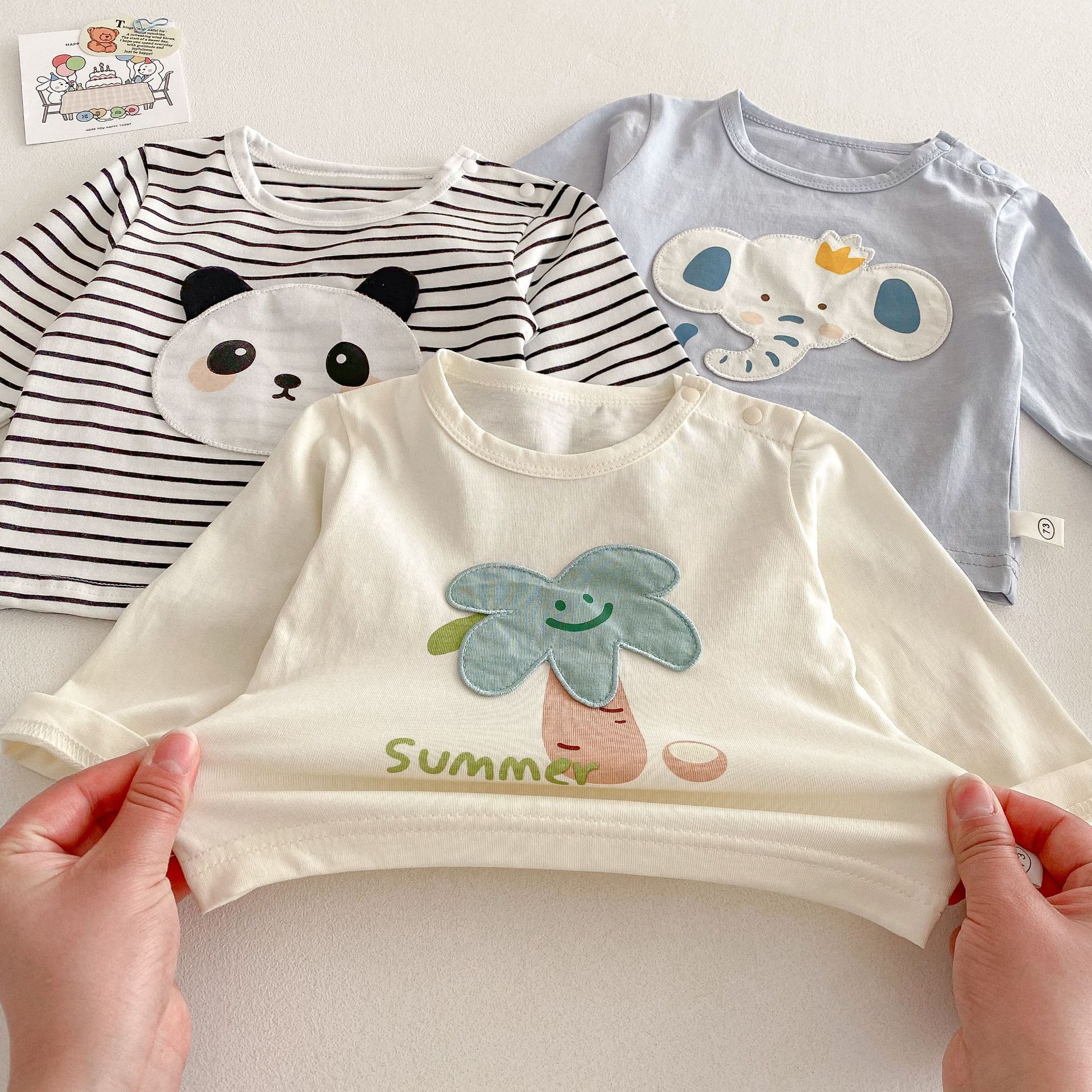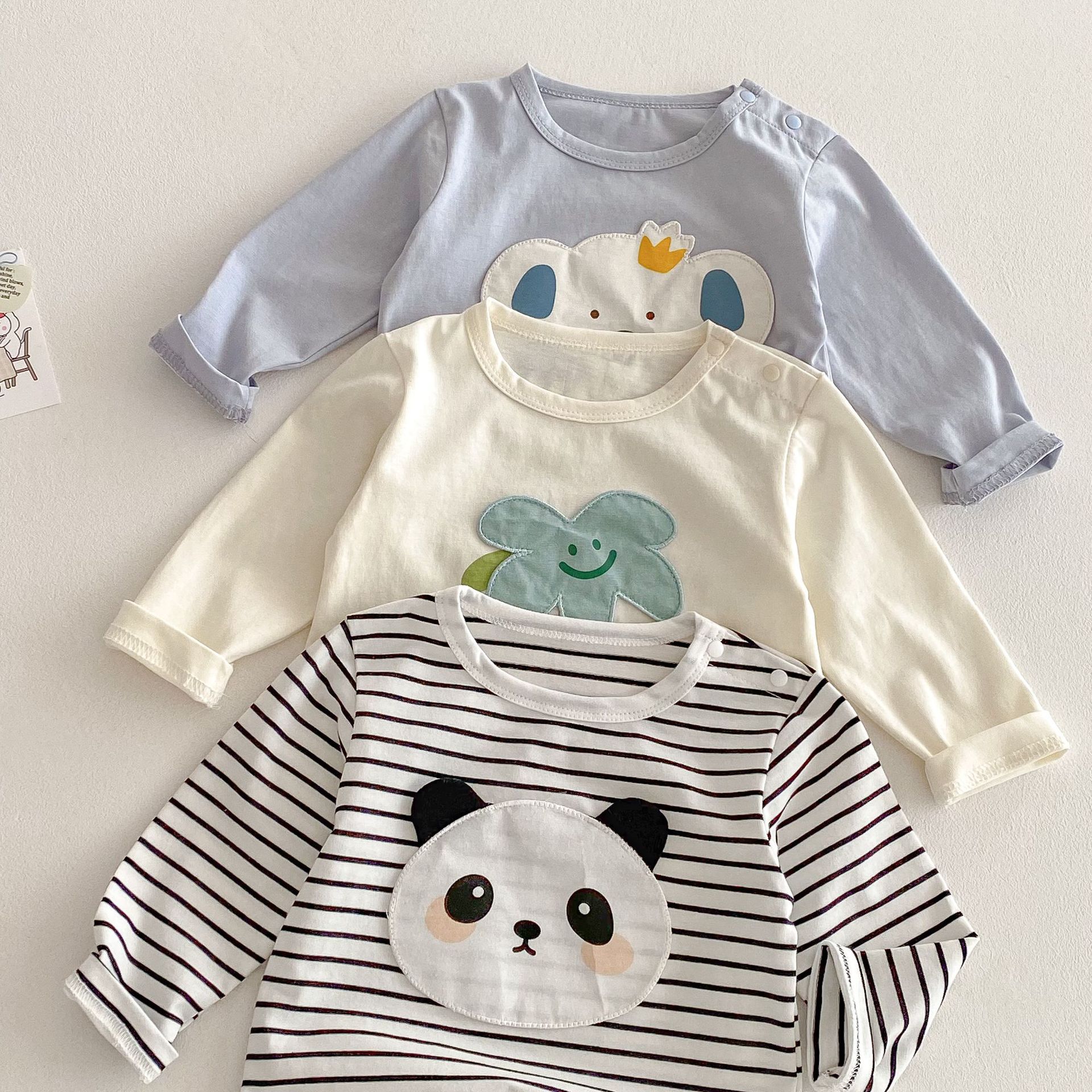 儿童卡通T恤2025新款0-5岁男童韩版洋气贴布打底衫潮宝宝春装上衣