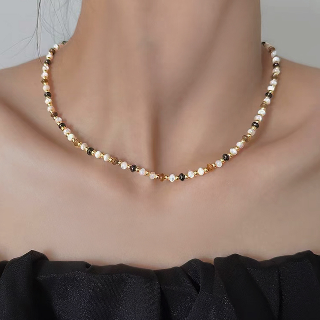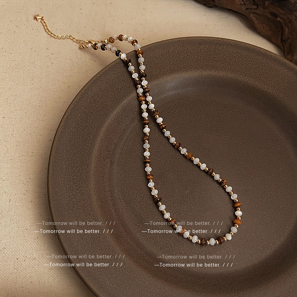 小众时髦虎眼石锁骨链女手作高级感天然石项链个性潮时尚叠戴颈链