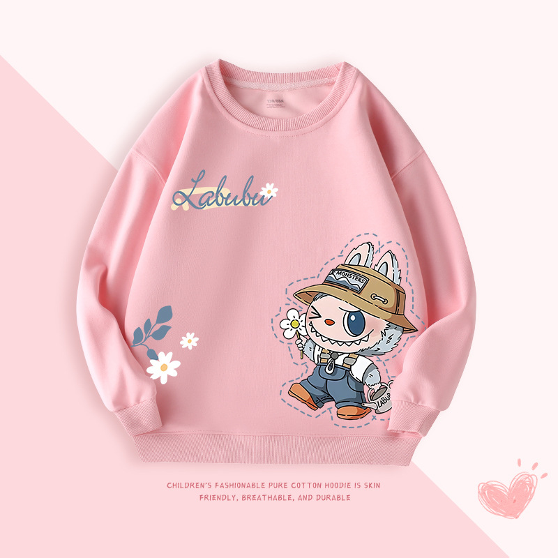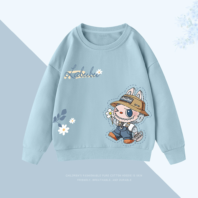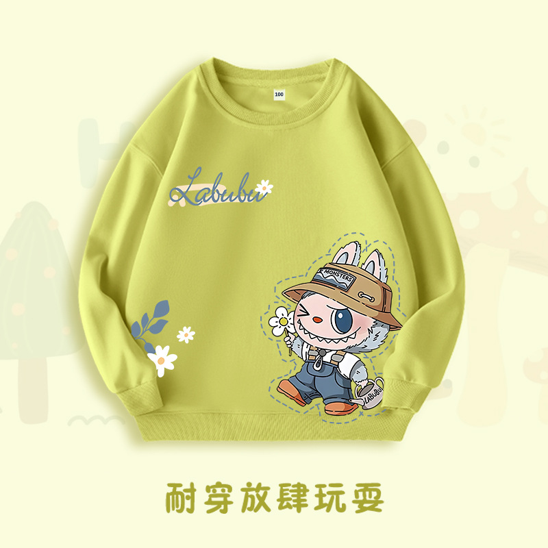 爆款可爱拉布布潮牌新款秋装中小儿童撞色插肩袖圆领韩版童卫衣潮