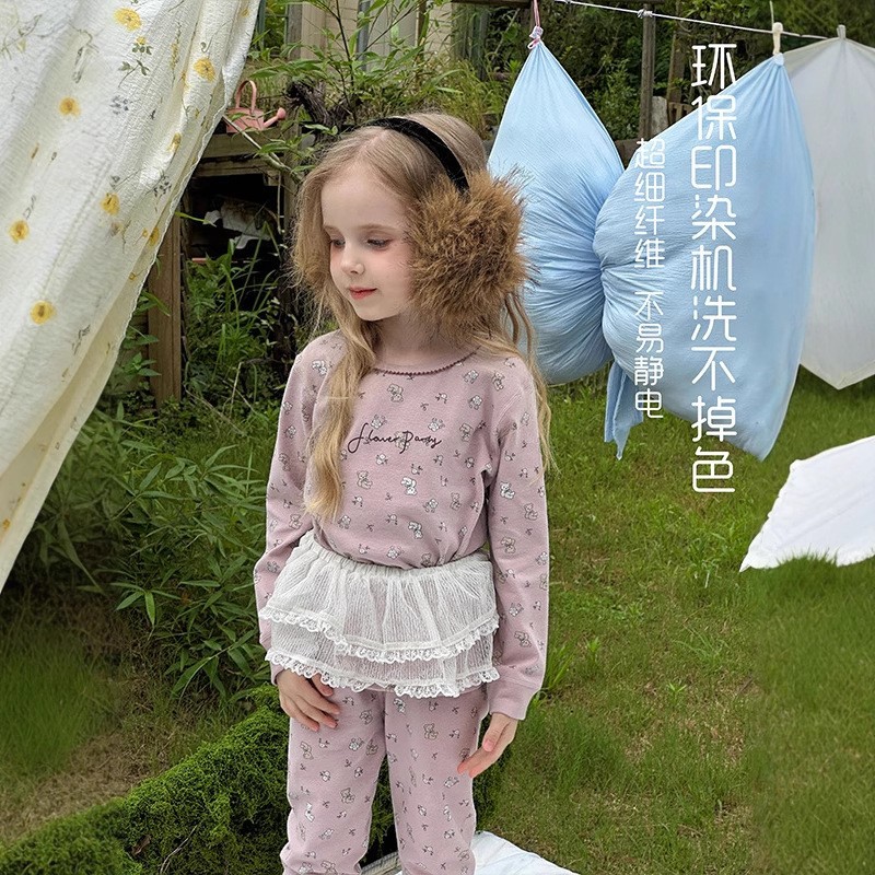 安美雅儿童套装秋衣秋裤长袖套装羊毛拉架收口舒适儿童睡衣厂家批
