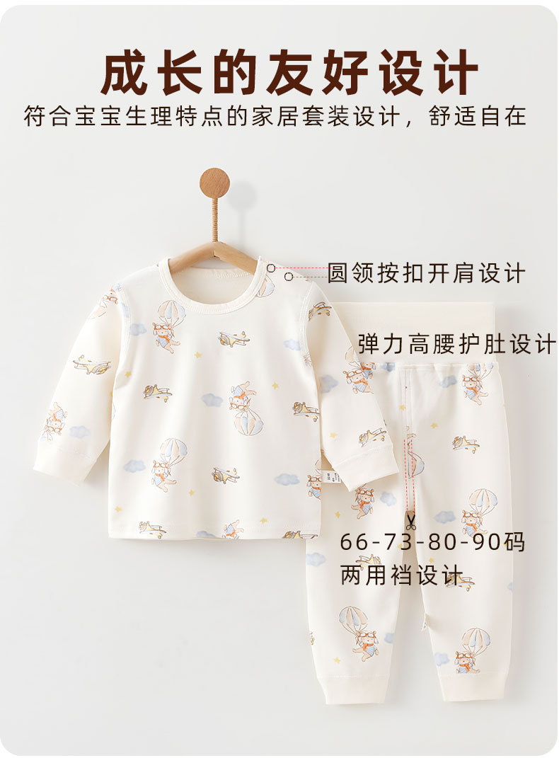 婴儿秋衣套装全棉高腰护肚秋裤男女宝宝长袖分体睡衣纯棉儿童套装