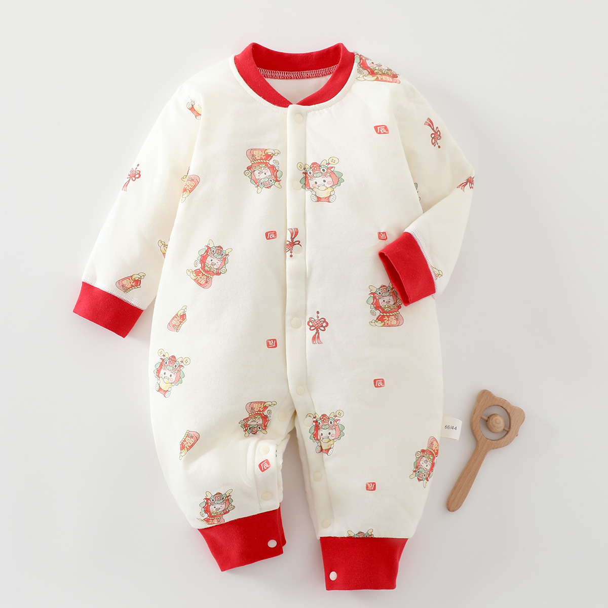 婴儿衣服秋冬季40g夹棉加厚爬服哈衣新生儿保暖连体衣宝宝a类睡衣