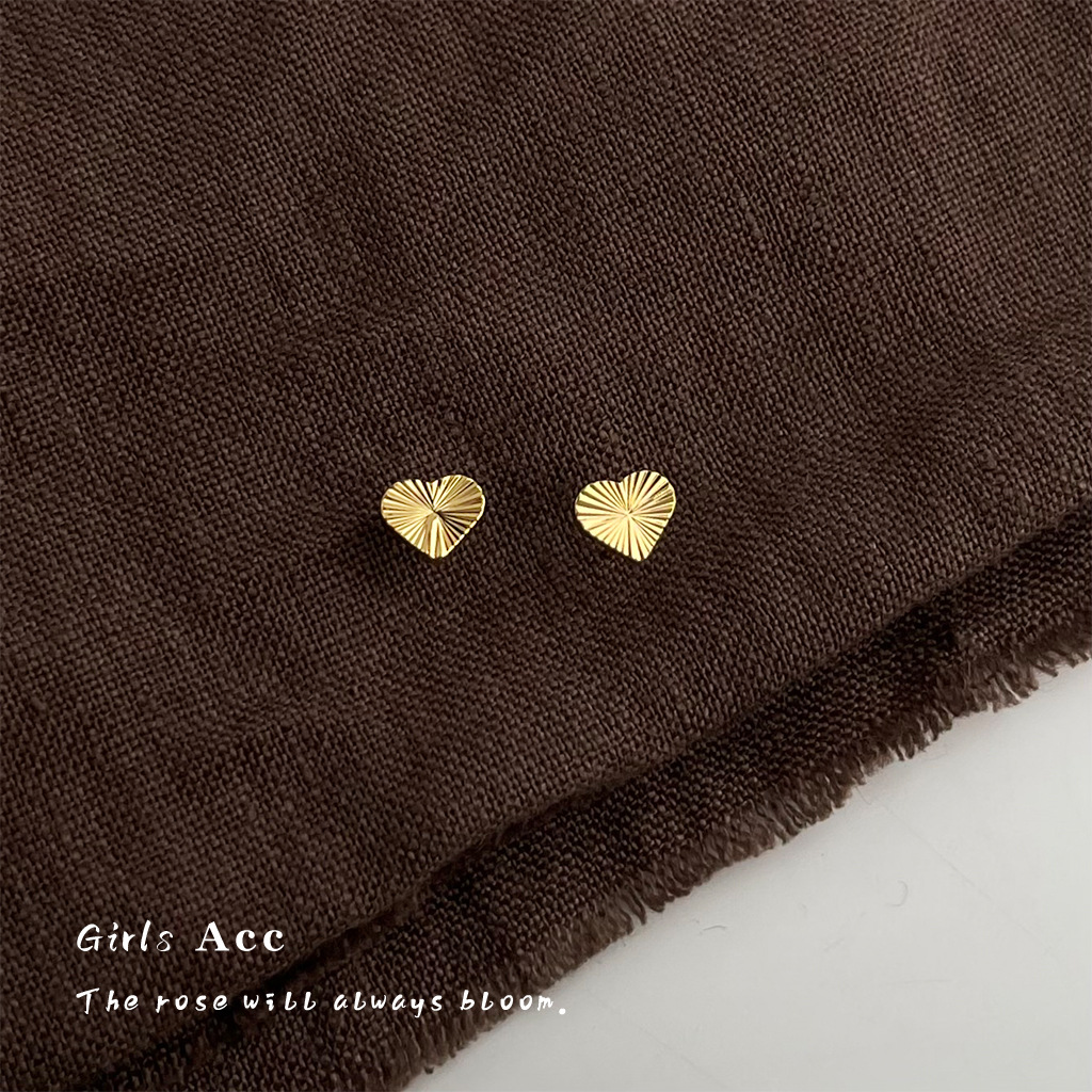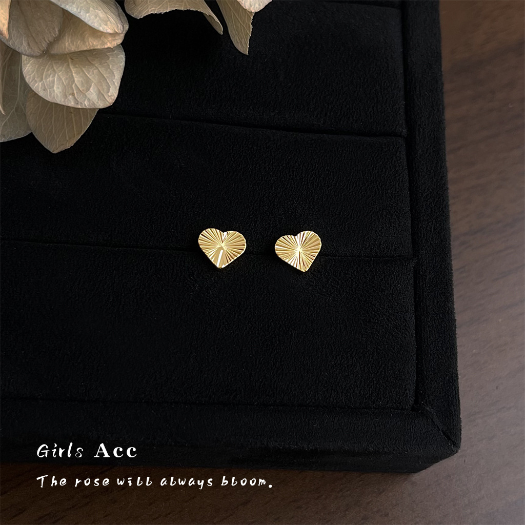 爆闪车花工艺迷你爱心耳钉女简约小巧时尚气质耳环小众轻奢风耳饰
