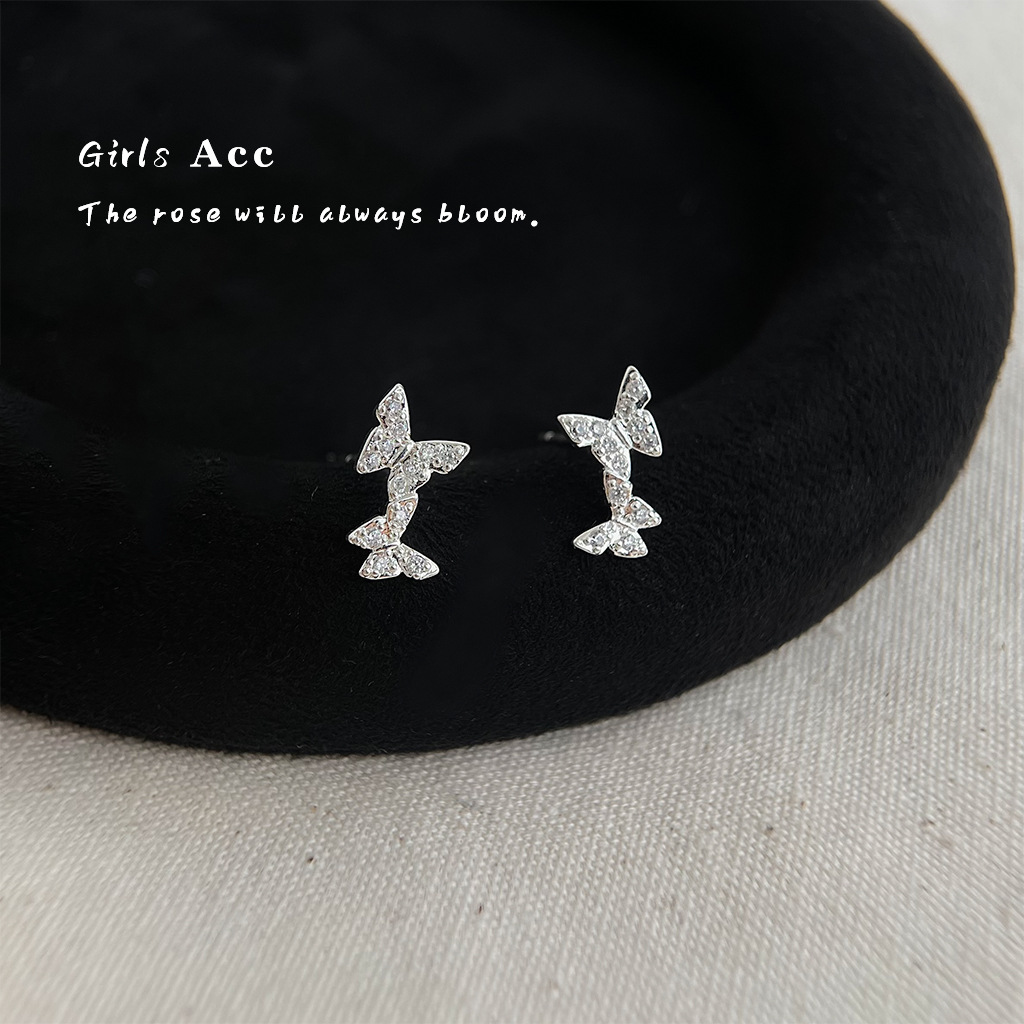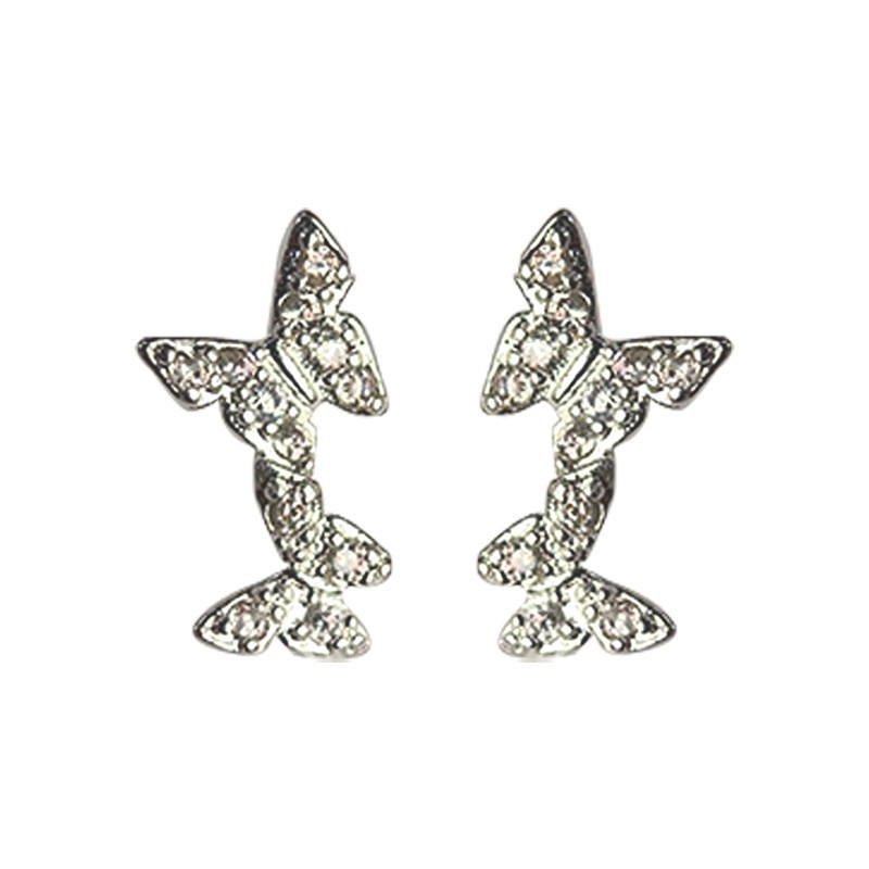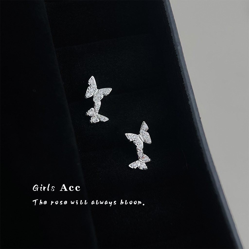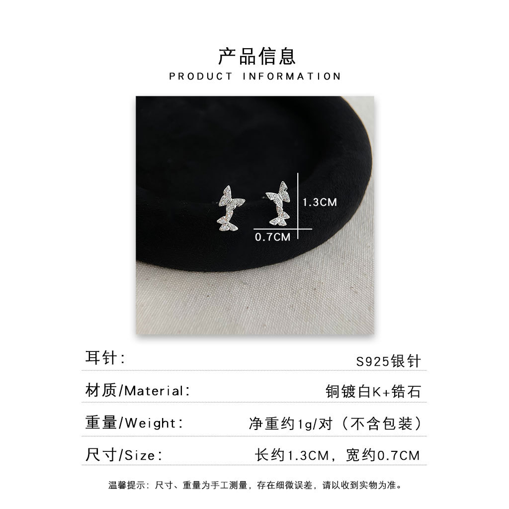 韩系时尚锆石双蝴蝶耳钉轻奢小众设计甜美耳环通勤百搭高级感耳饰