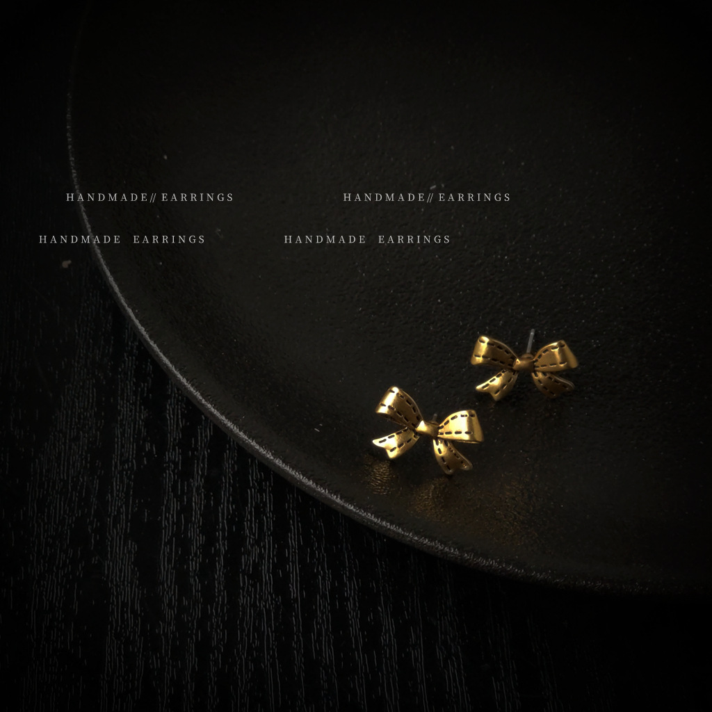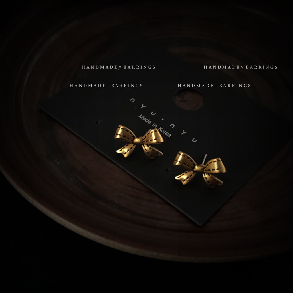 质感满分~电镀古金哑光蝴蝶结耳钉女金属风时尚耳环港风个性耳饰