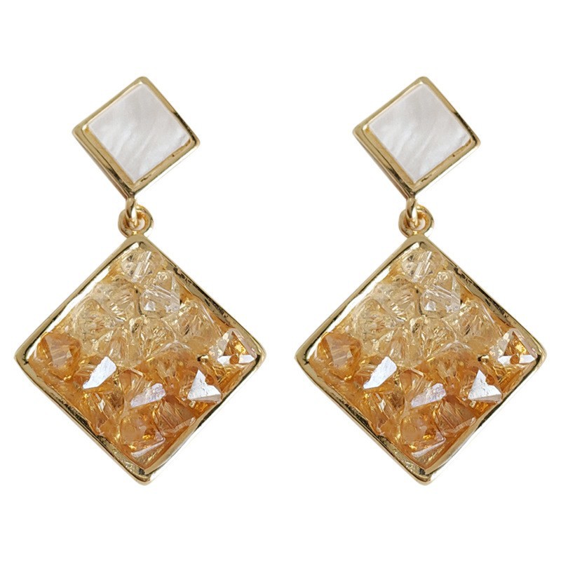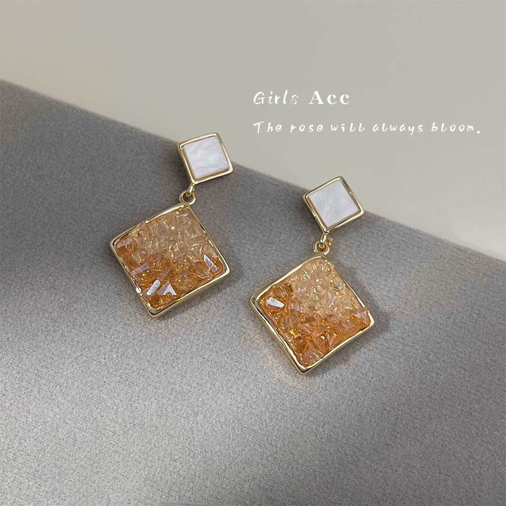 橘子海~渐变玻璃水晶耳环法式优雅气质耳饰时尚通勤几何耳钉银针