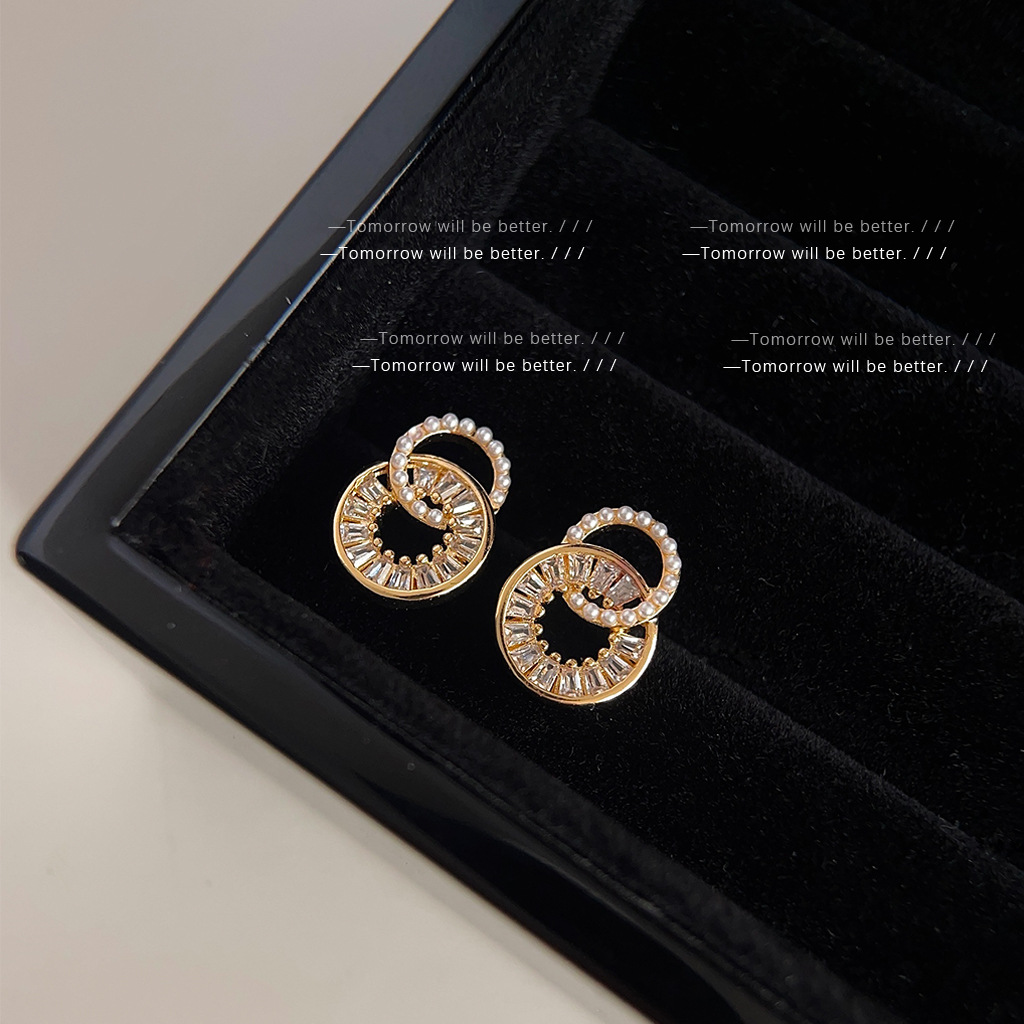 简约小巧微镶锆石珍珠耳钉轻奢风优雅时尚耳环高级感气质耳饰批发