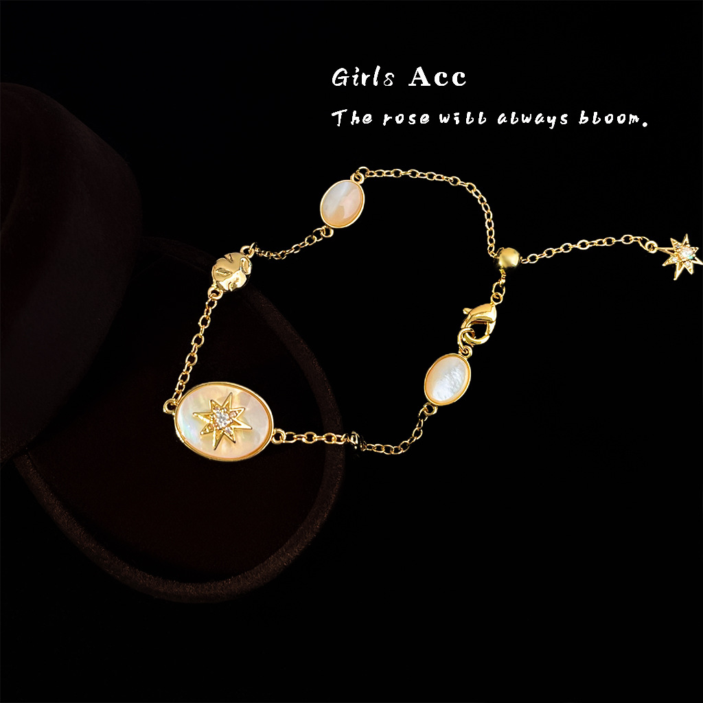 轻奢老钱风真贝母芒星手链女个性时尚气质轻奢风锆石手饰送闺蜜