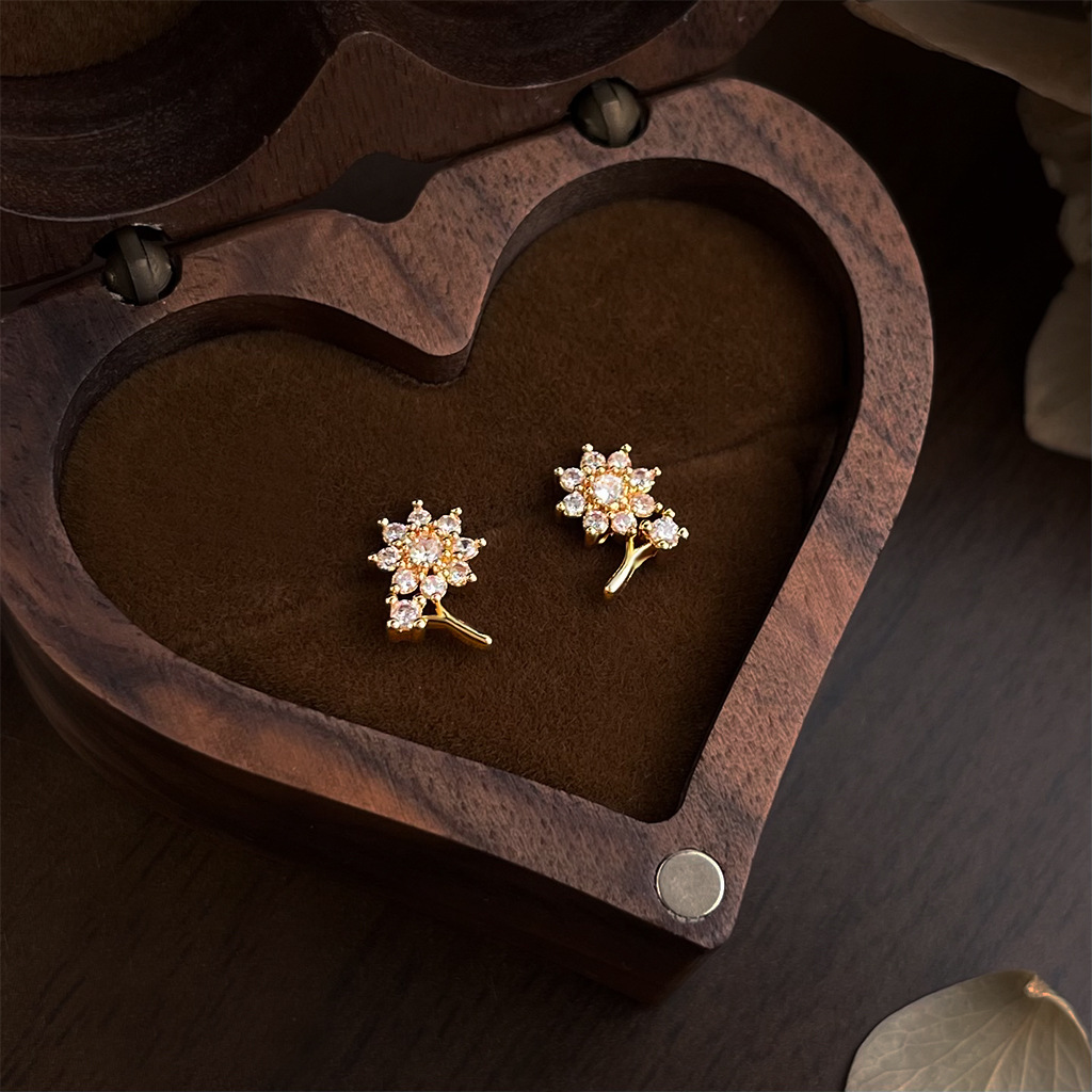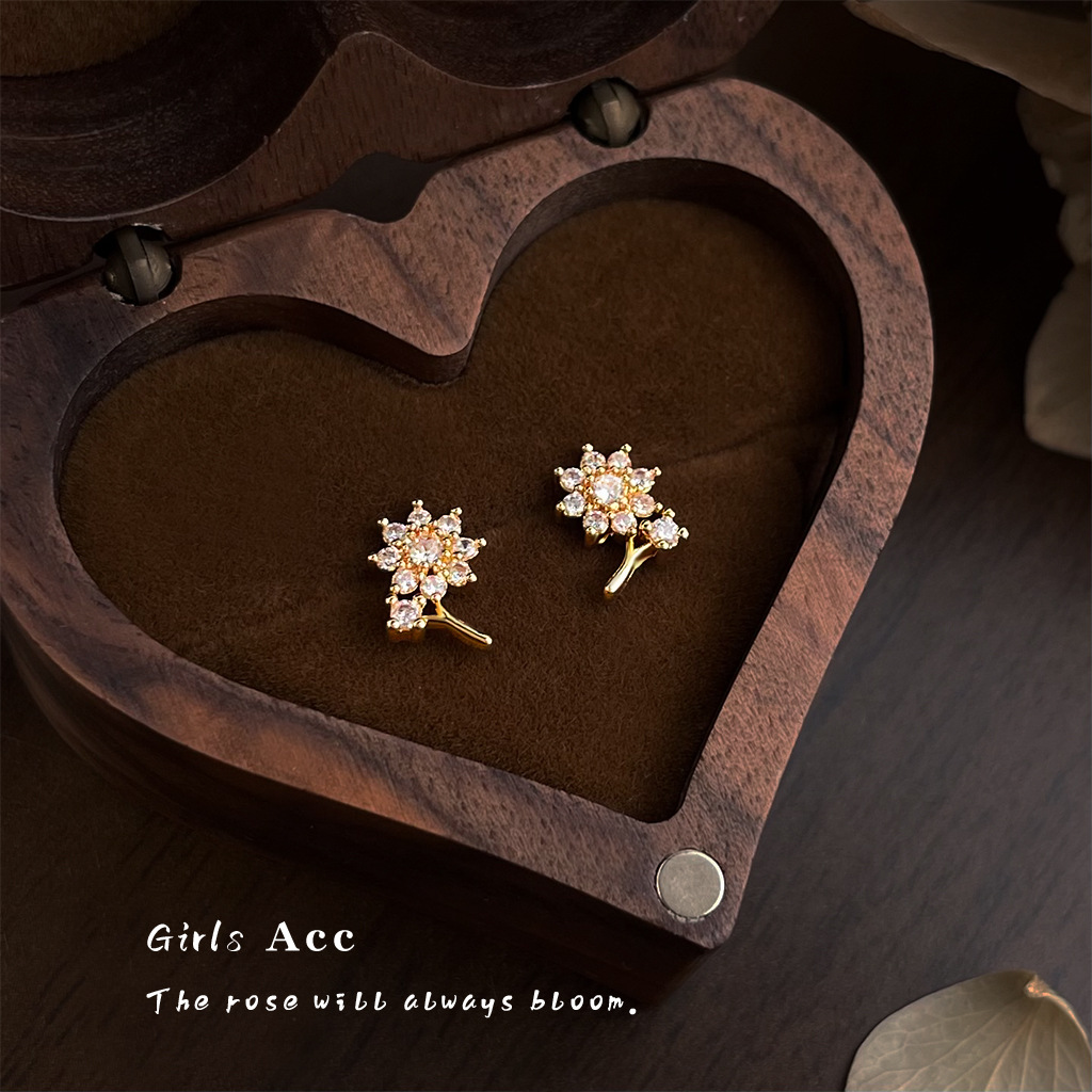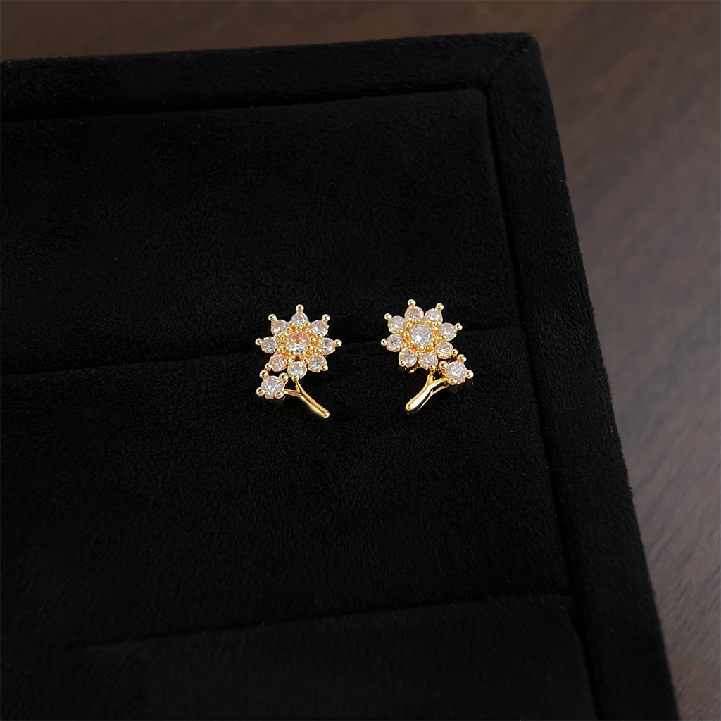 微镶锆石花朵耳钉女清新甜美小香风气质耳饰轻奢风高级感花卉耳环