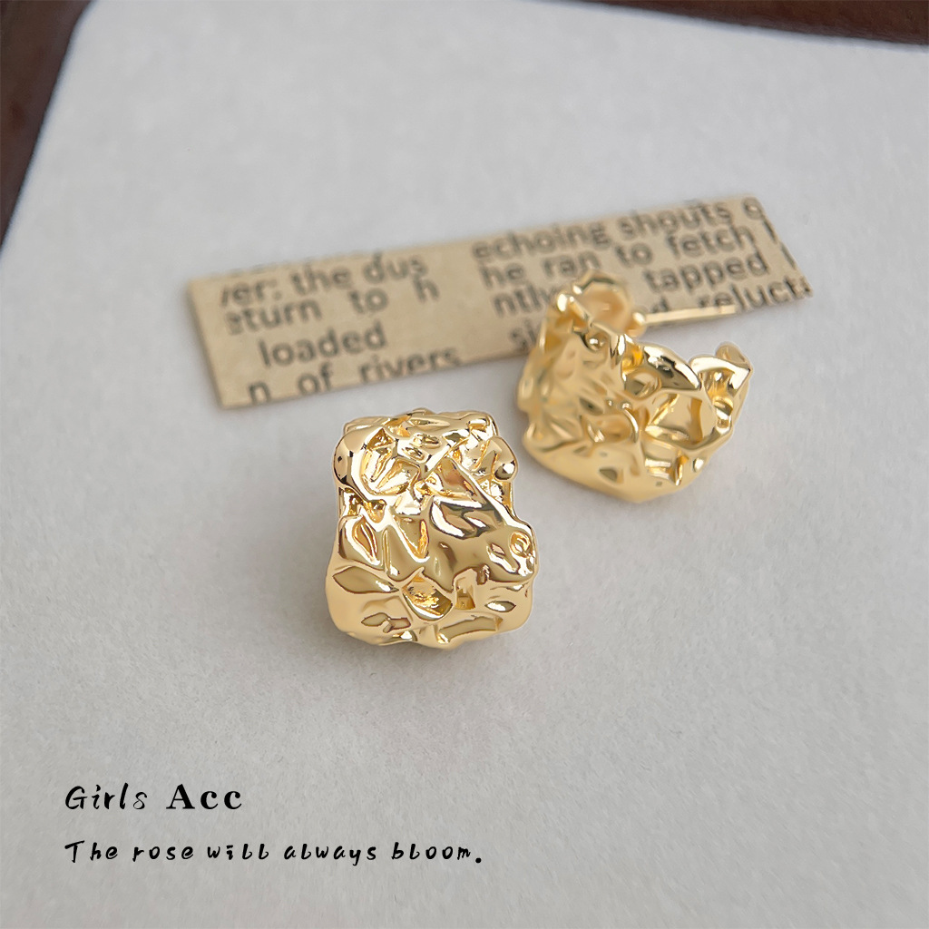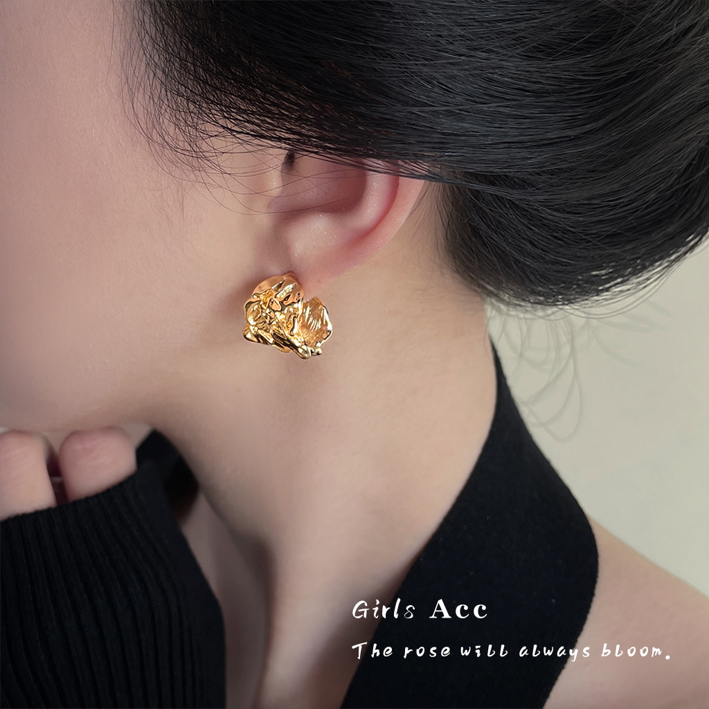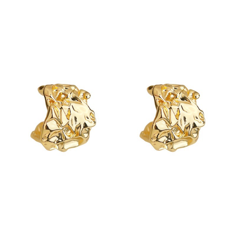 欧美时尚金属C型耳环个性夸张宽面褶皱肌理感耳钉高级感跨境耳饰