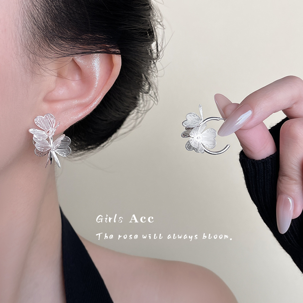 韩系时尚镂空花朵耳环女清新甜美立体花卉耳饰小众轻奢高级感耳钉