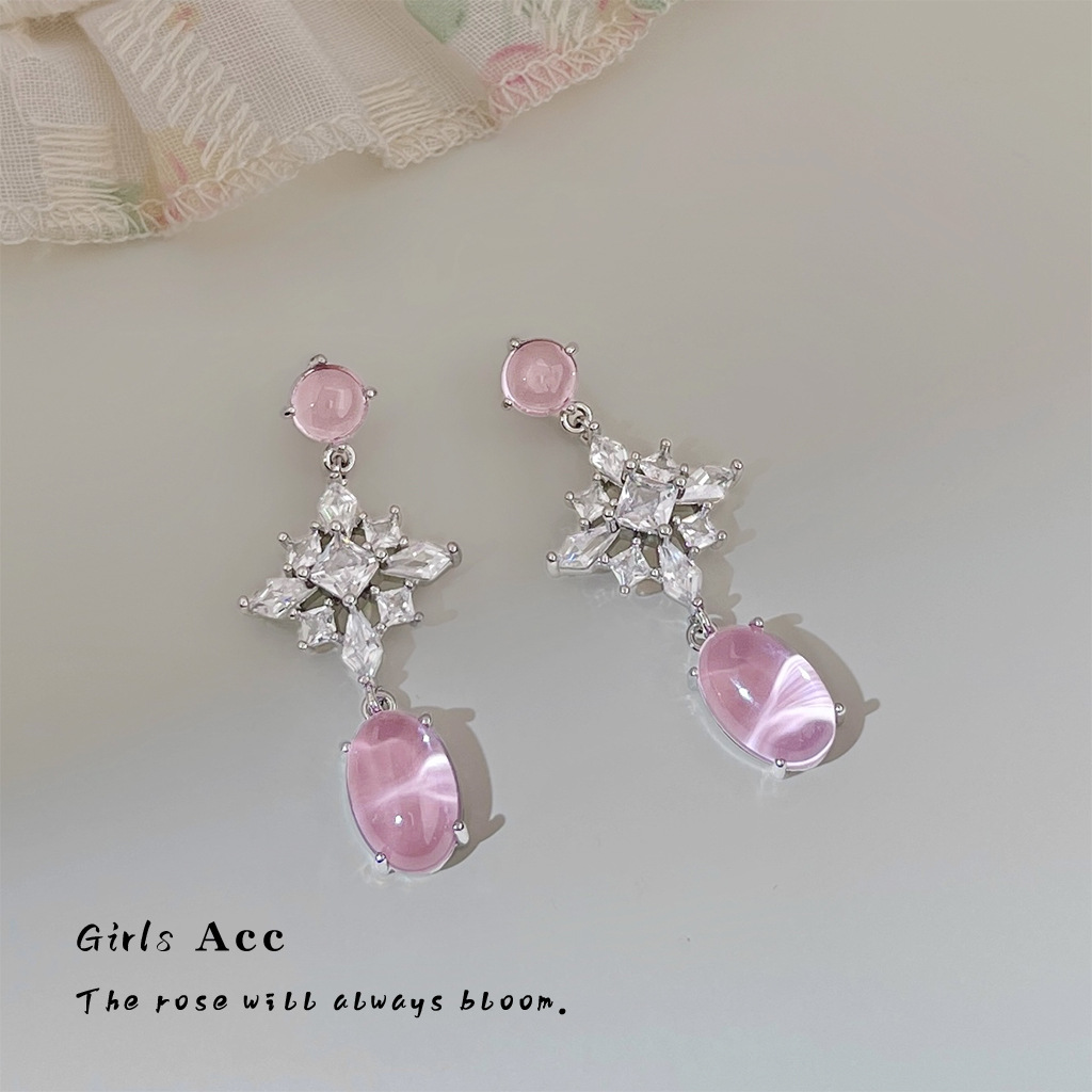 重工时尚花朵锆石耳饰女轻奢风长款水滴形流苏耳环超仙高级感耳钉