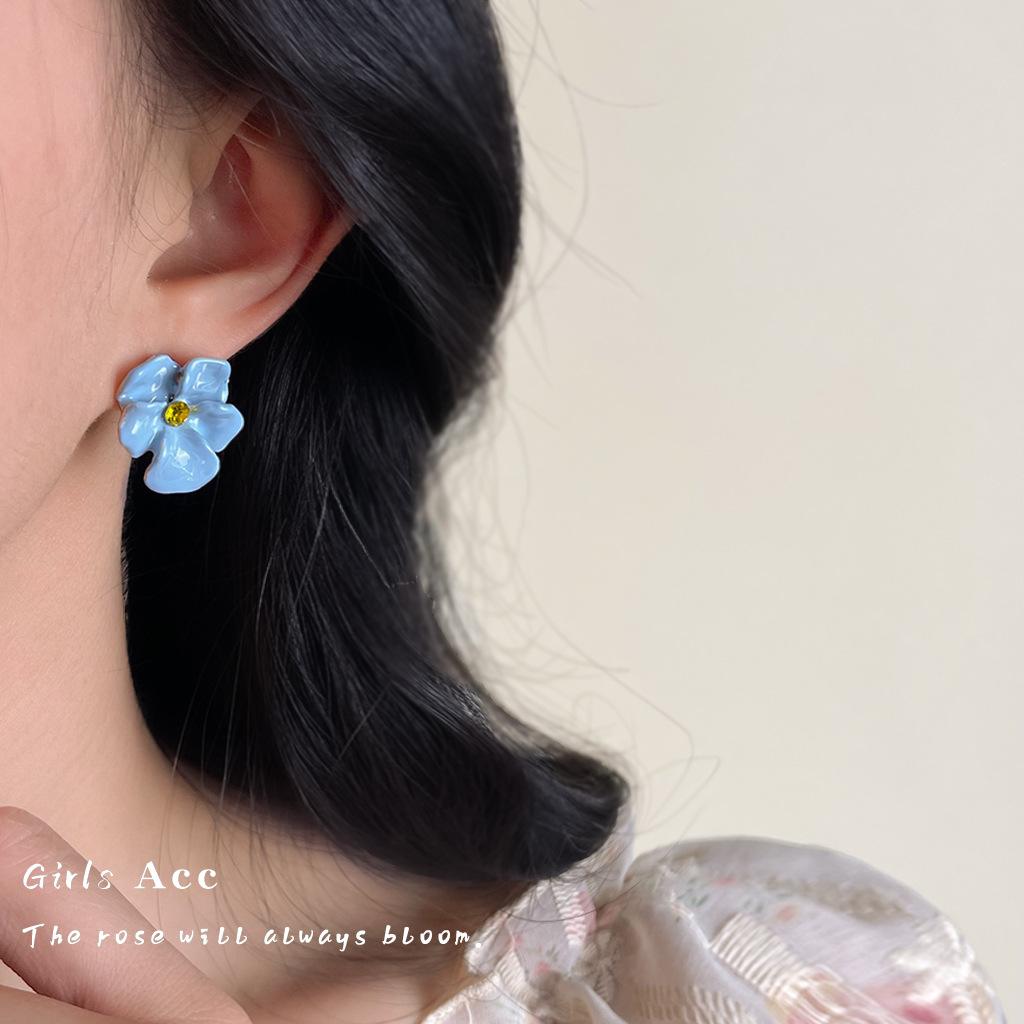 蓝色晕染层次感滴油花朵耳环女小清新森系时尚气质百搭高级感耳钉
