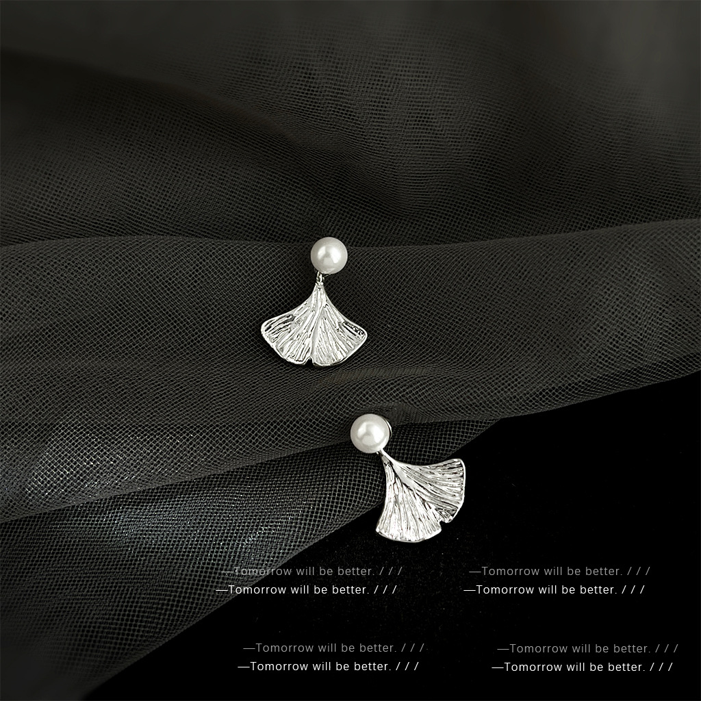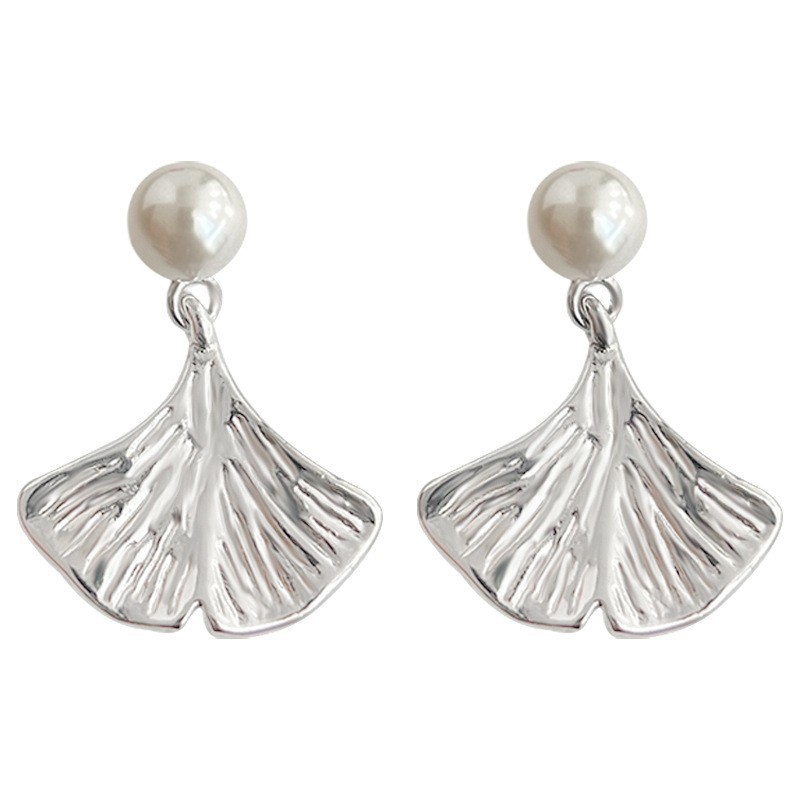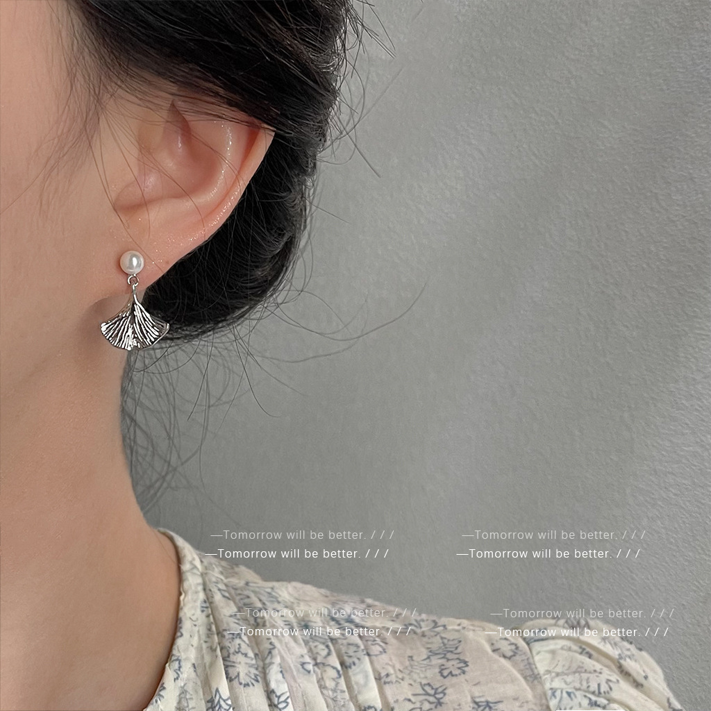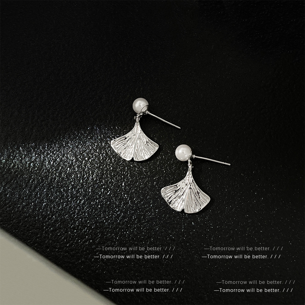时尚通勤款银杏叶耳环女简约百搭珍珠耳钉高级感优雅气质耳饰批发