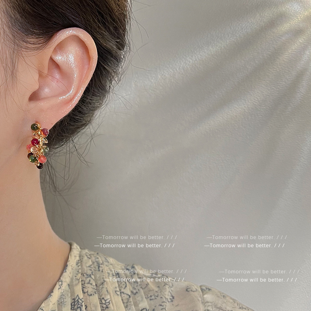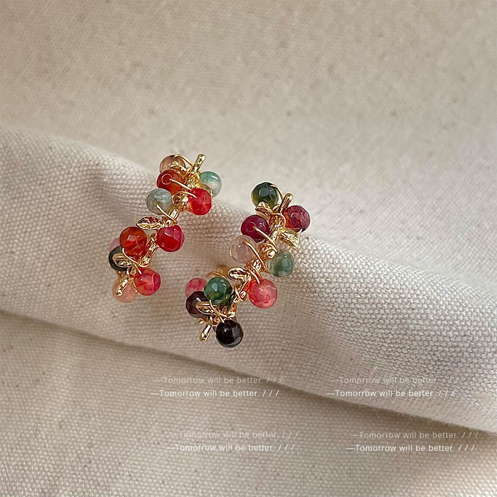 多巴胺彩色串珠耳环女小众手作设计感耳钉个性时尚高级感耳饰批发
