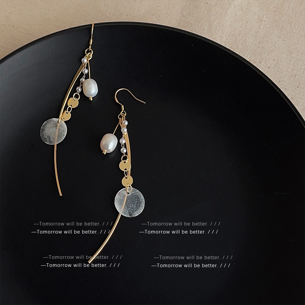 度假风~长款流苏真贝壳耳环超仙时尚珍珠耳钉小众气质手作款耳饰