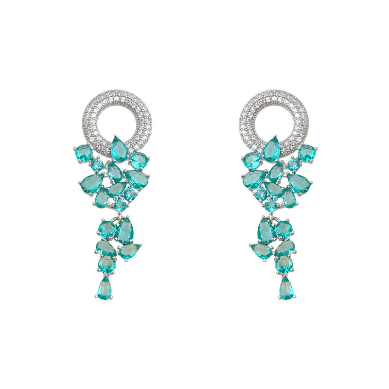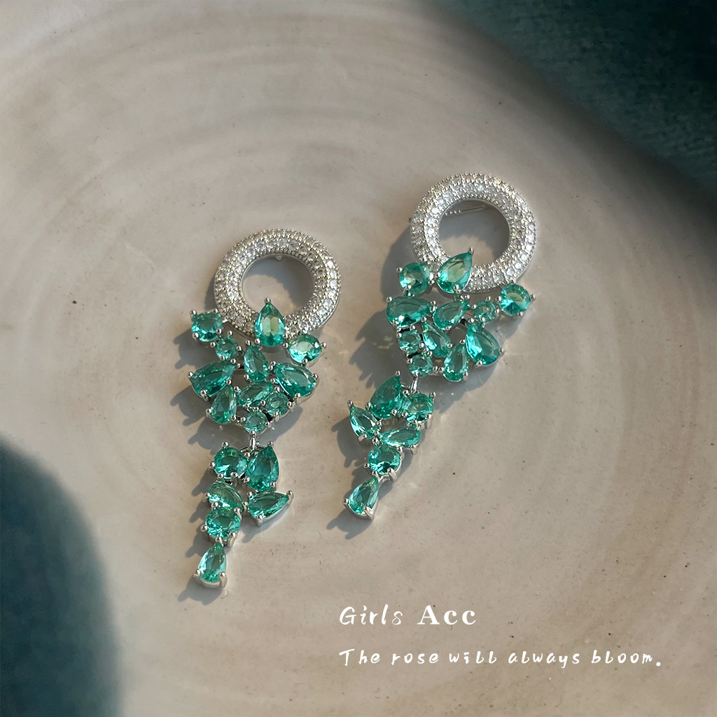 彩宝葡萄串流苏耳环小众轻奢重工锆石耳钉复古气质中古耳饰高级感