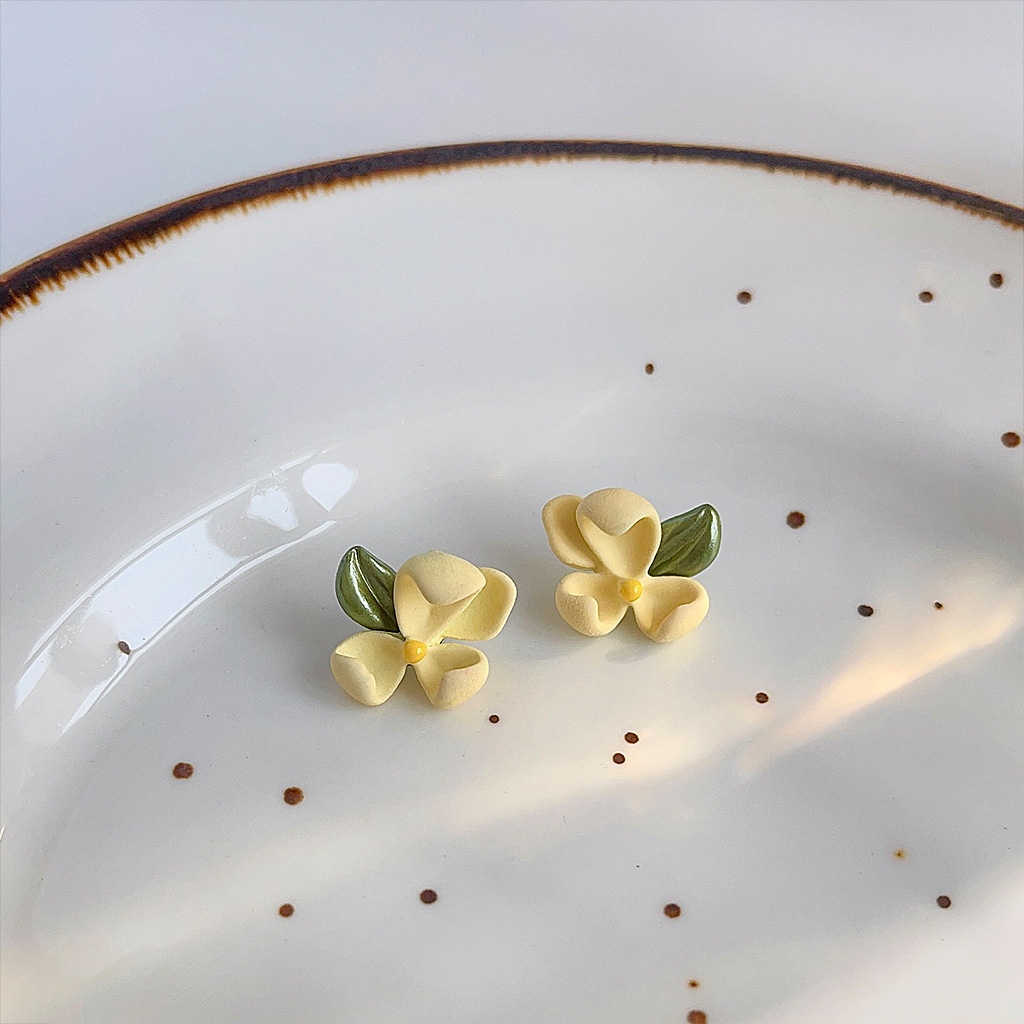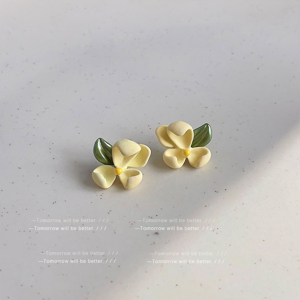 超仙烤漆栀子花朵耳钉女日韩小清新甜美耳环ins小众时尚森系耳饰