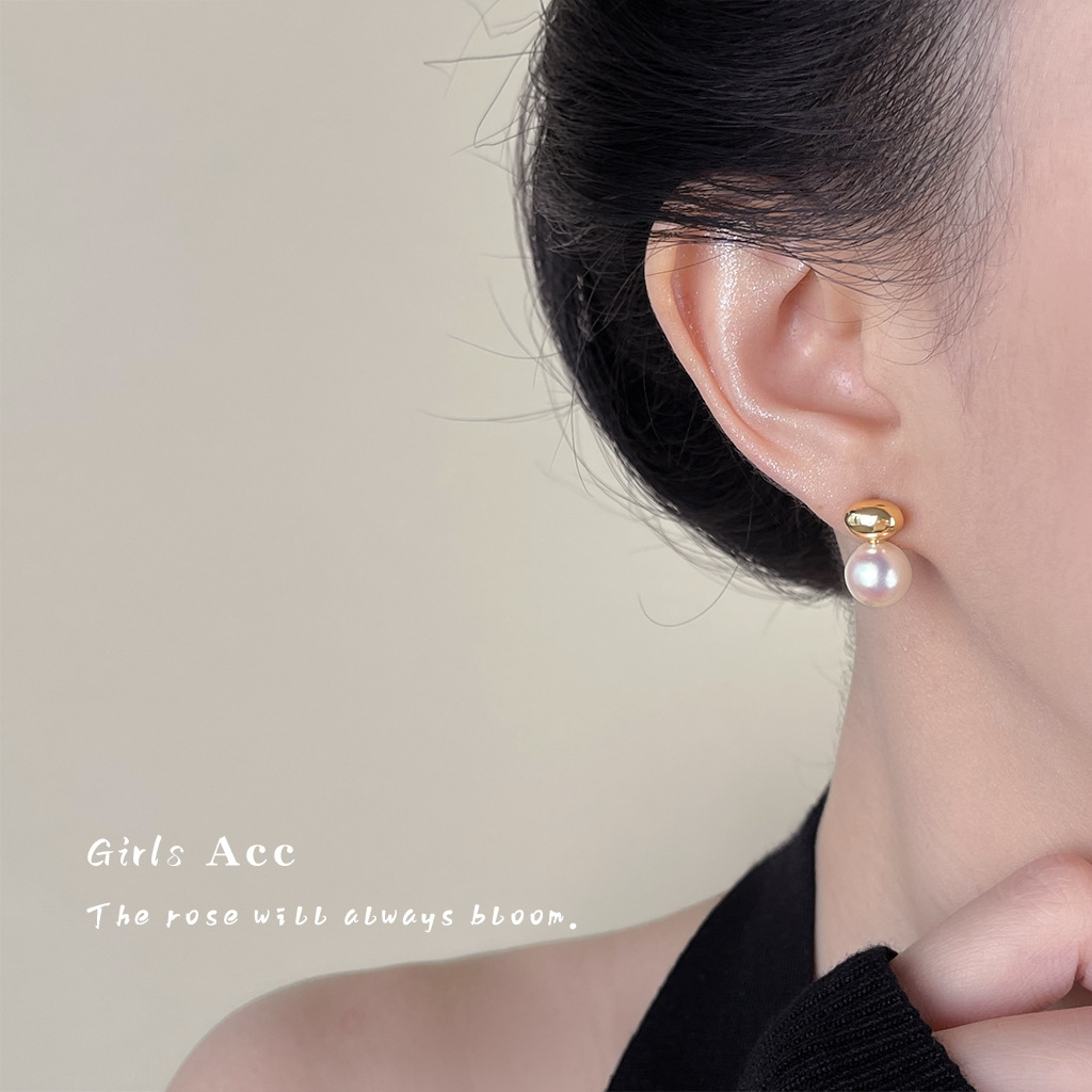 法式高级感珍珠耳钉S925银针轻奢质感耳环小众简约百搭耳饰批发