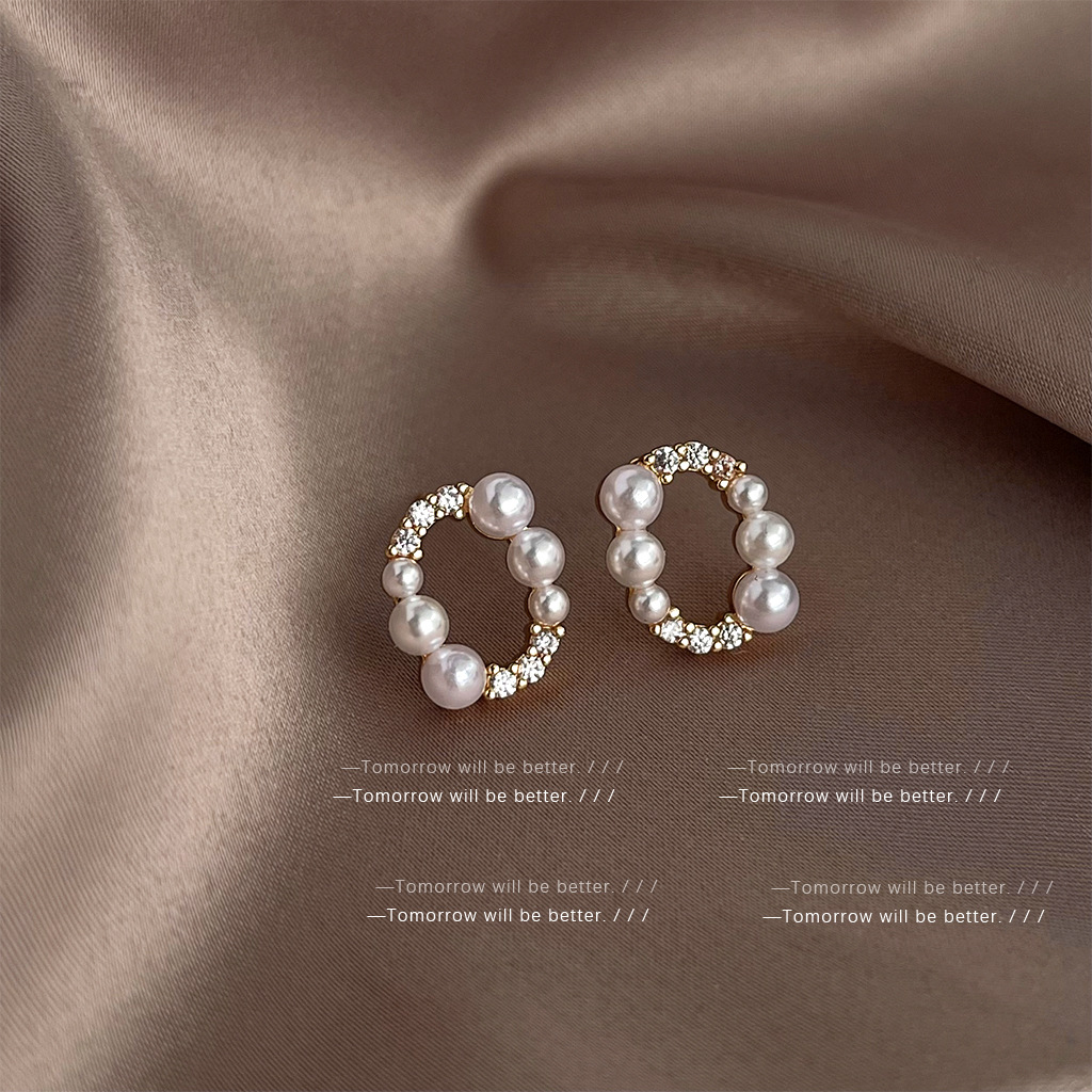 法式高级感轻奢风珍珠耳钉女银针简约小巧百搭锆石耳环耳饰高级感