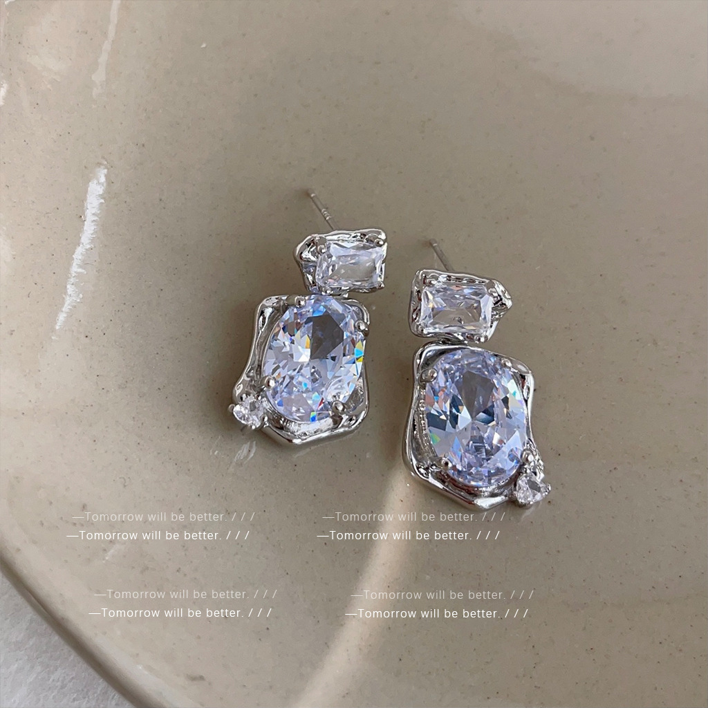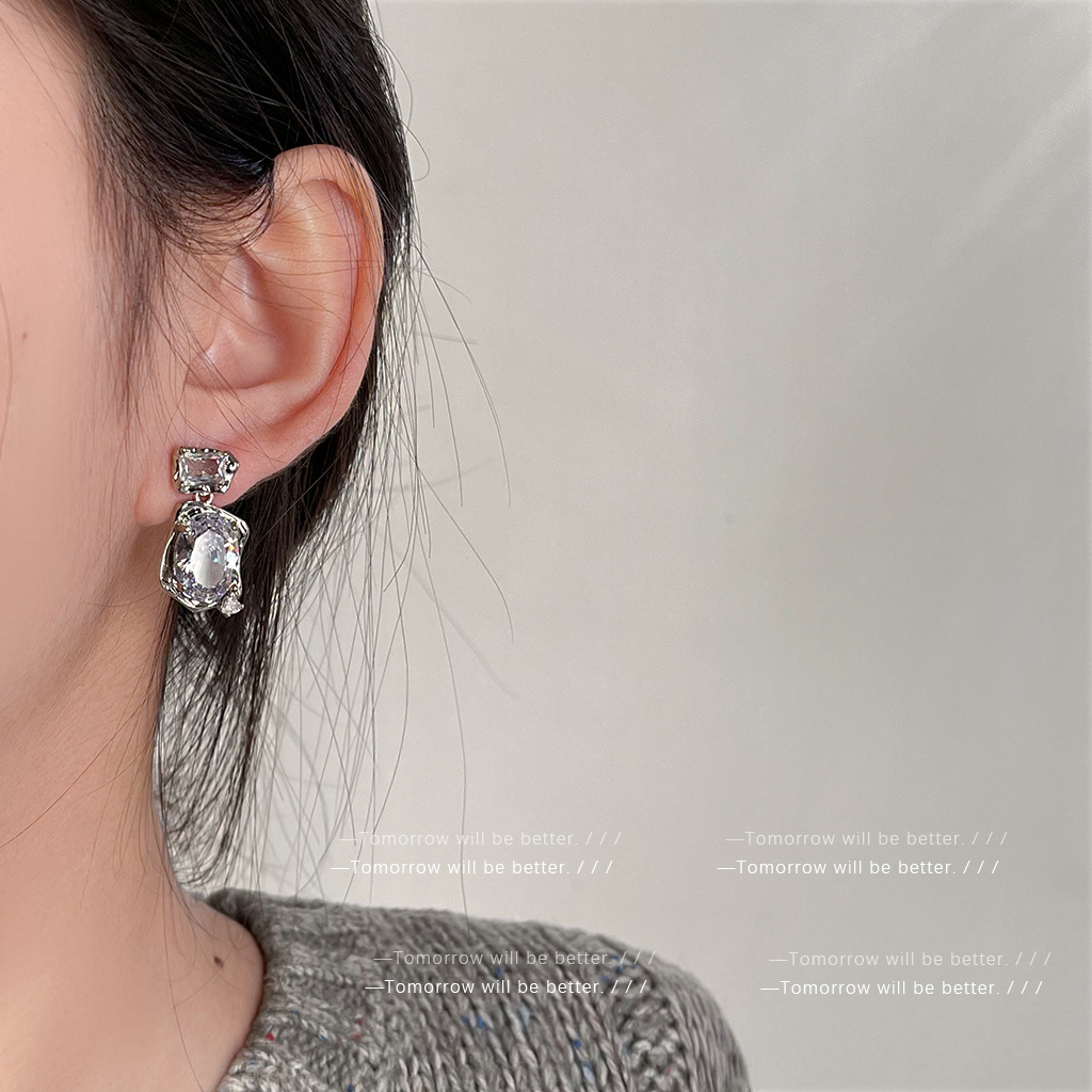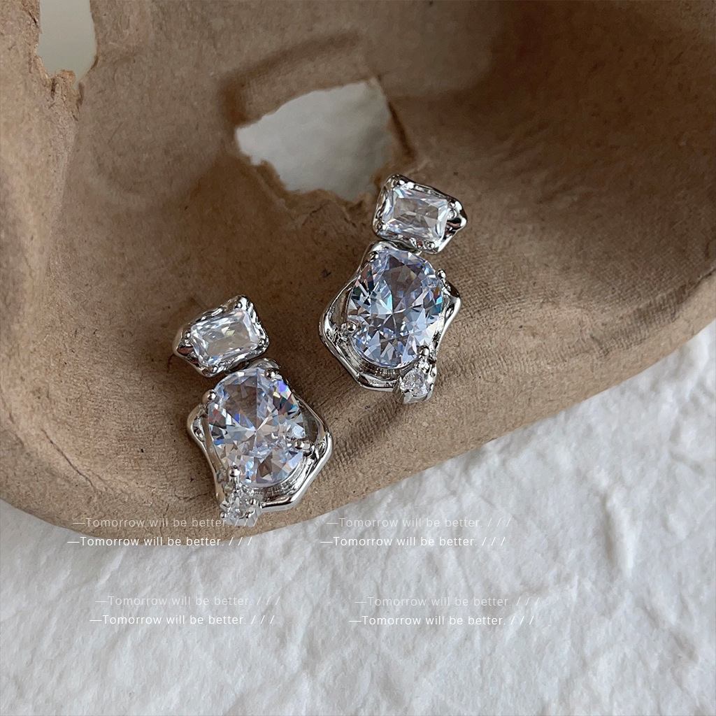 重工轻奢几何锆石耳环女个性潮冷淡风液态耳钉轻奢高级感耳饰批发