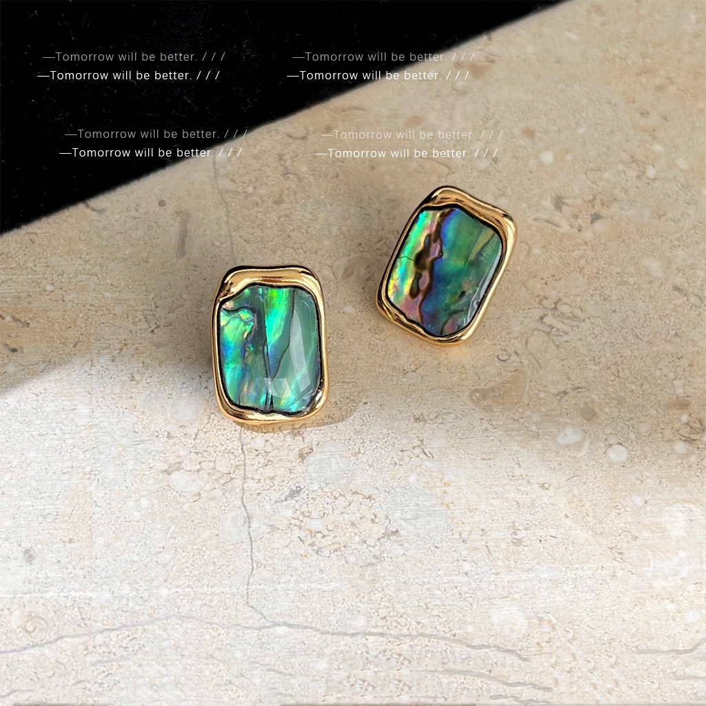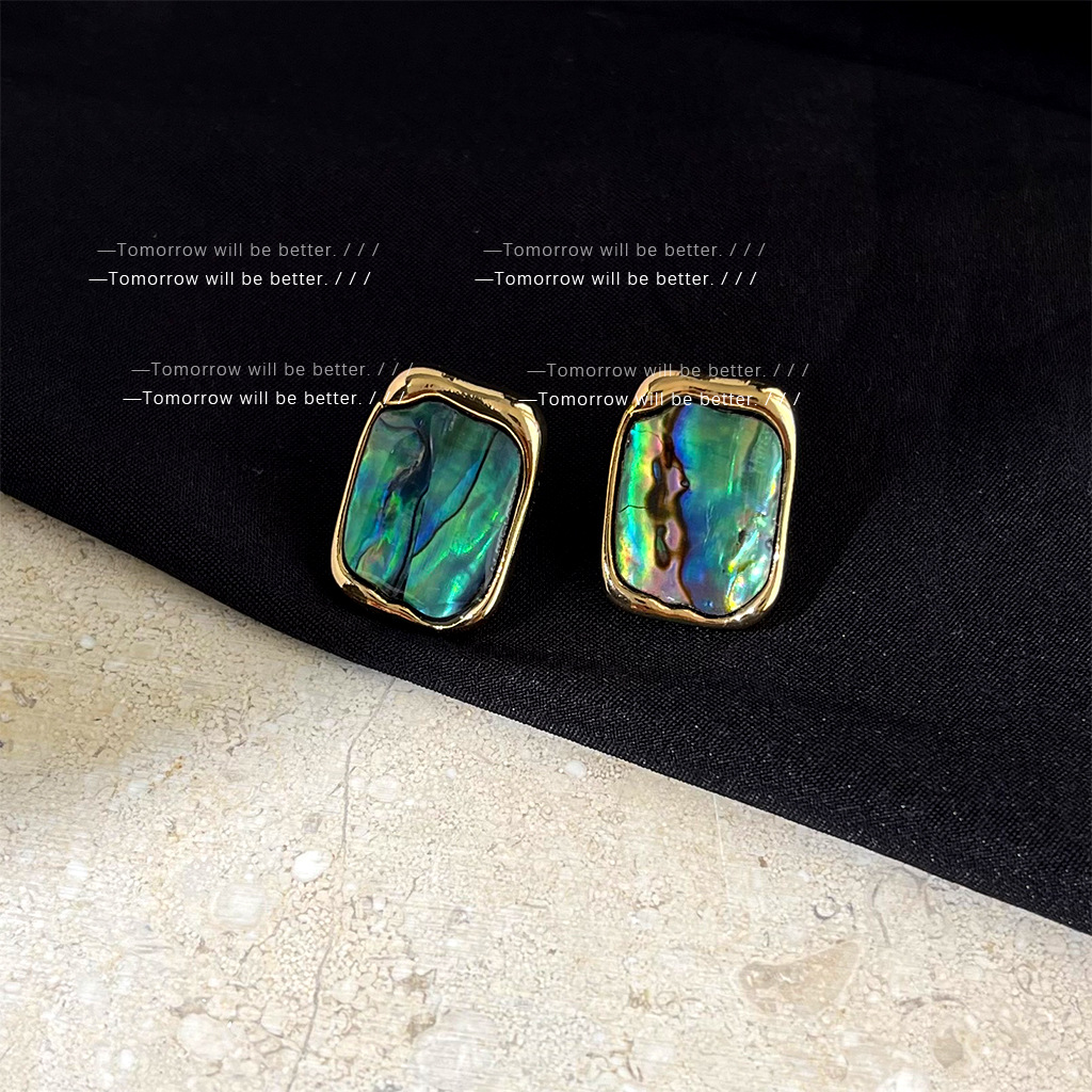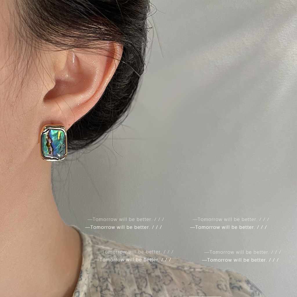 轻奢风天然鲍鱼贝壳耳环法式复古气质彩光耳钉个性百搭高级感耳饰