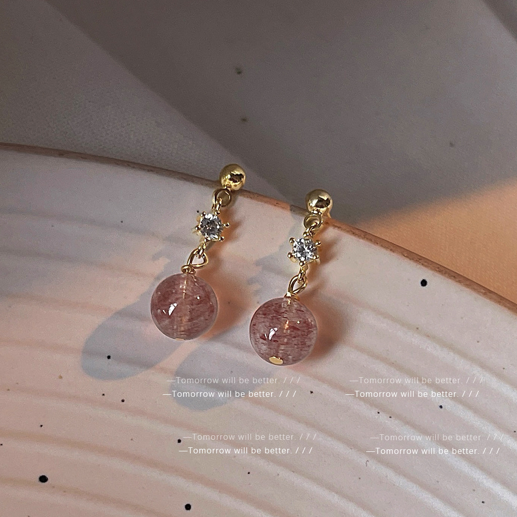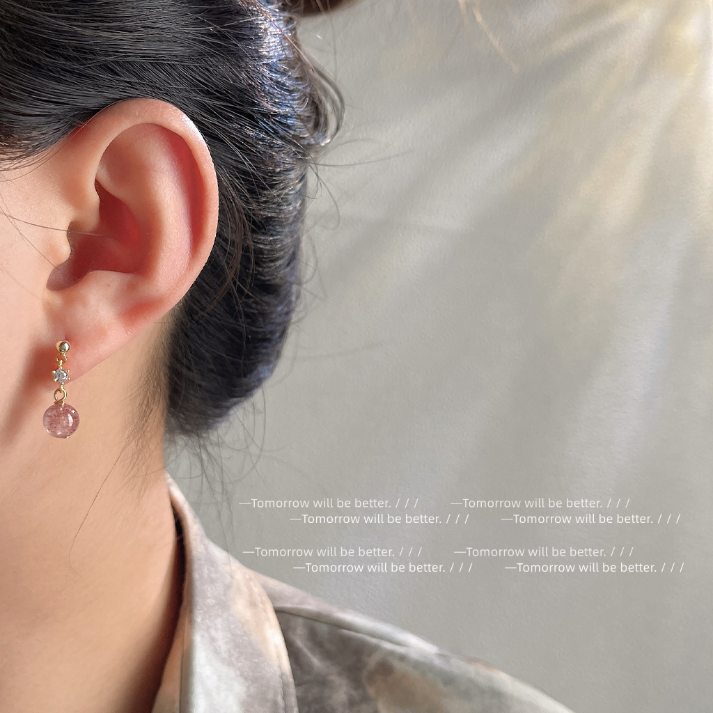 法式复古草莓晶锆石耳钉女手作款小众温柔优雅气质耳环银针批发
