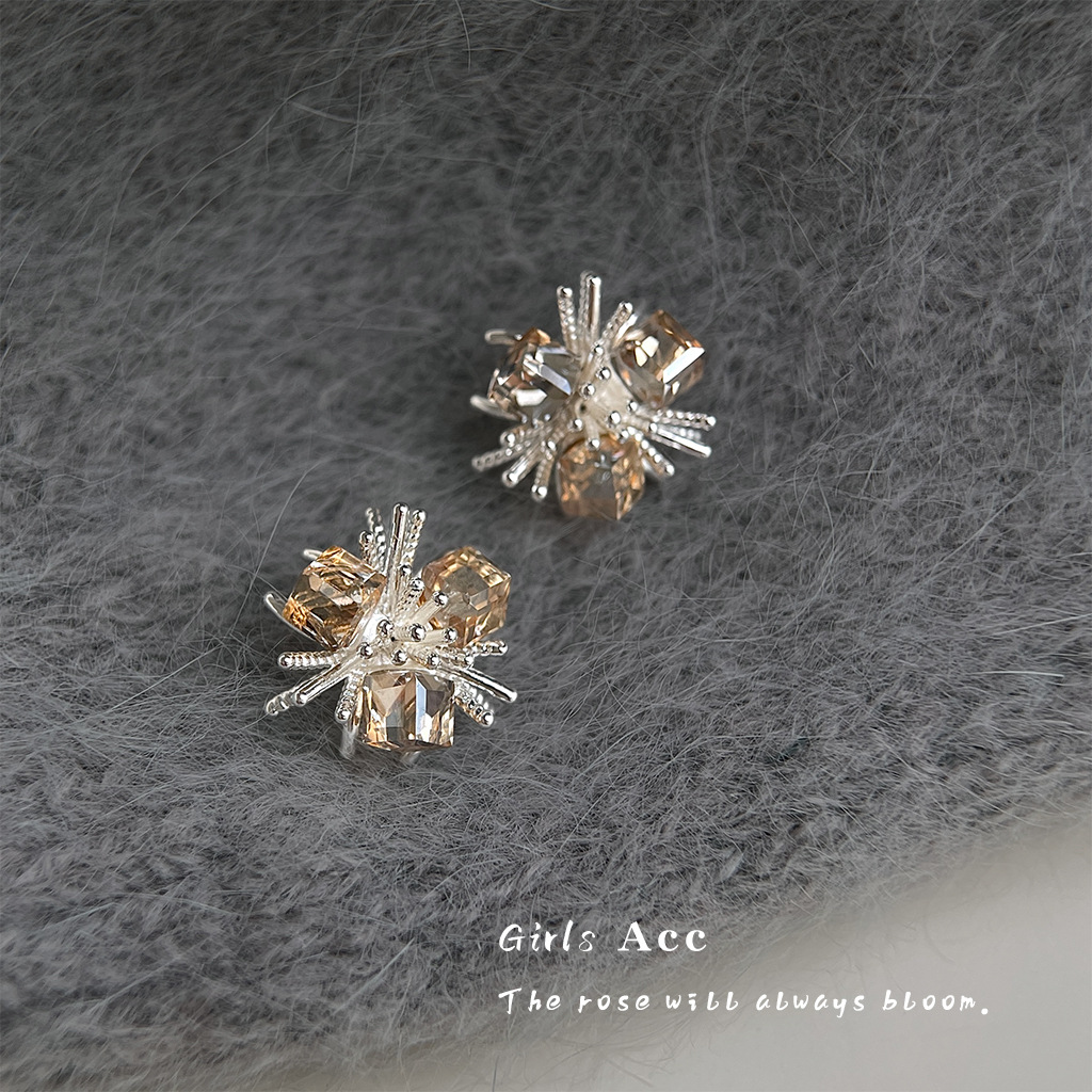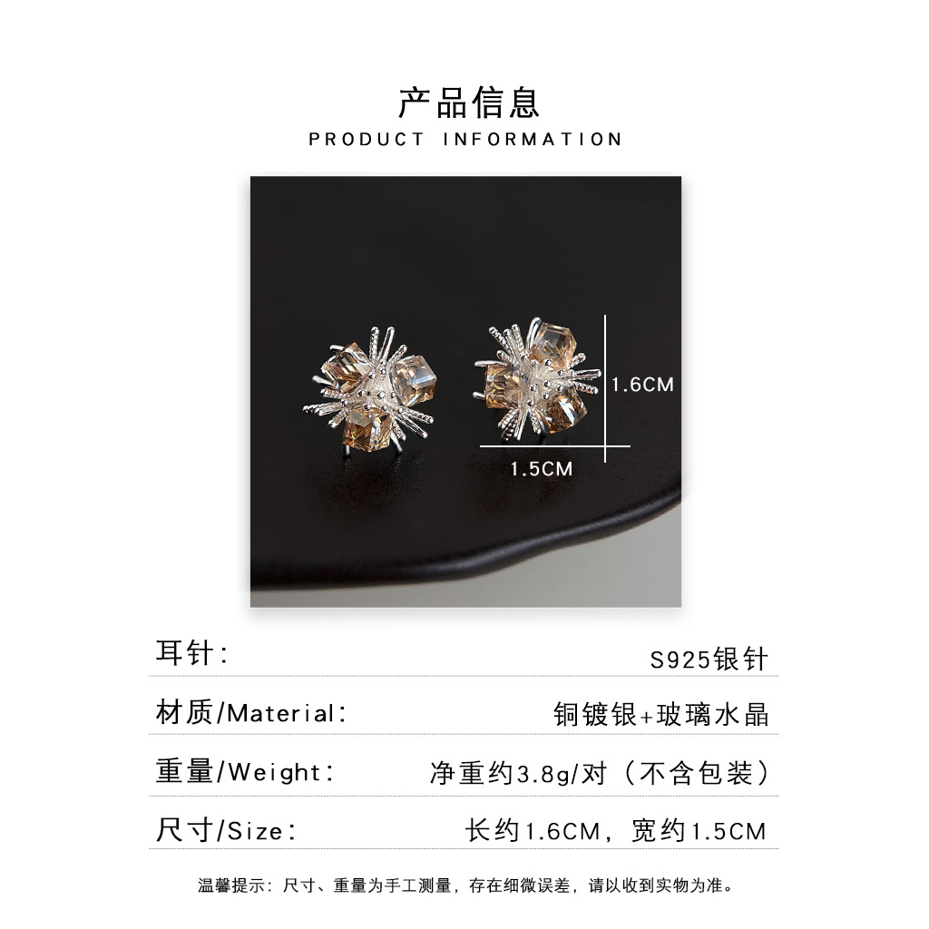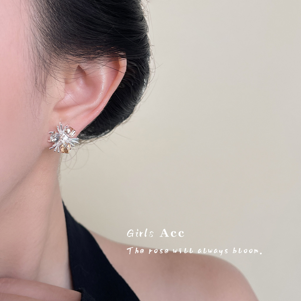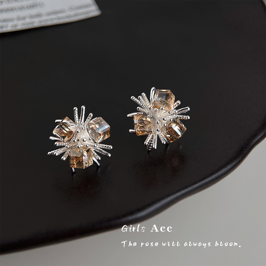 超仙玻璃水晶烟花耳钉设计感立体花卉耳环轻奢时尚气质耳饰高级感