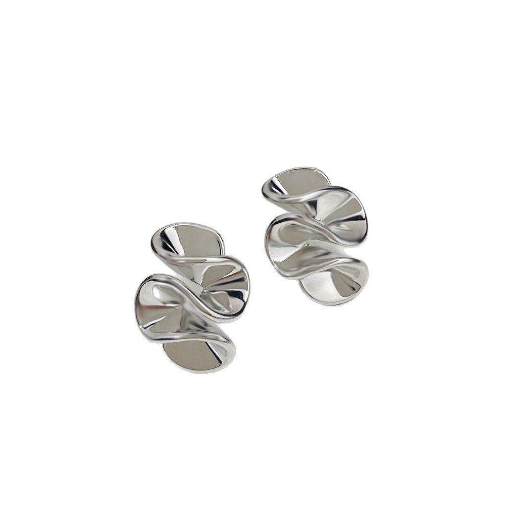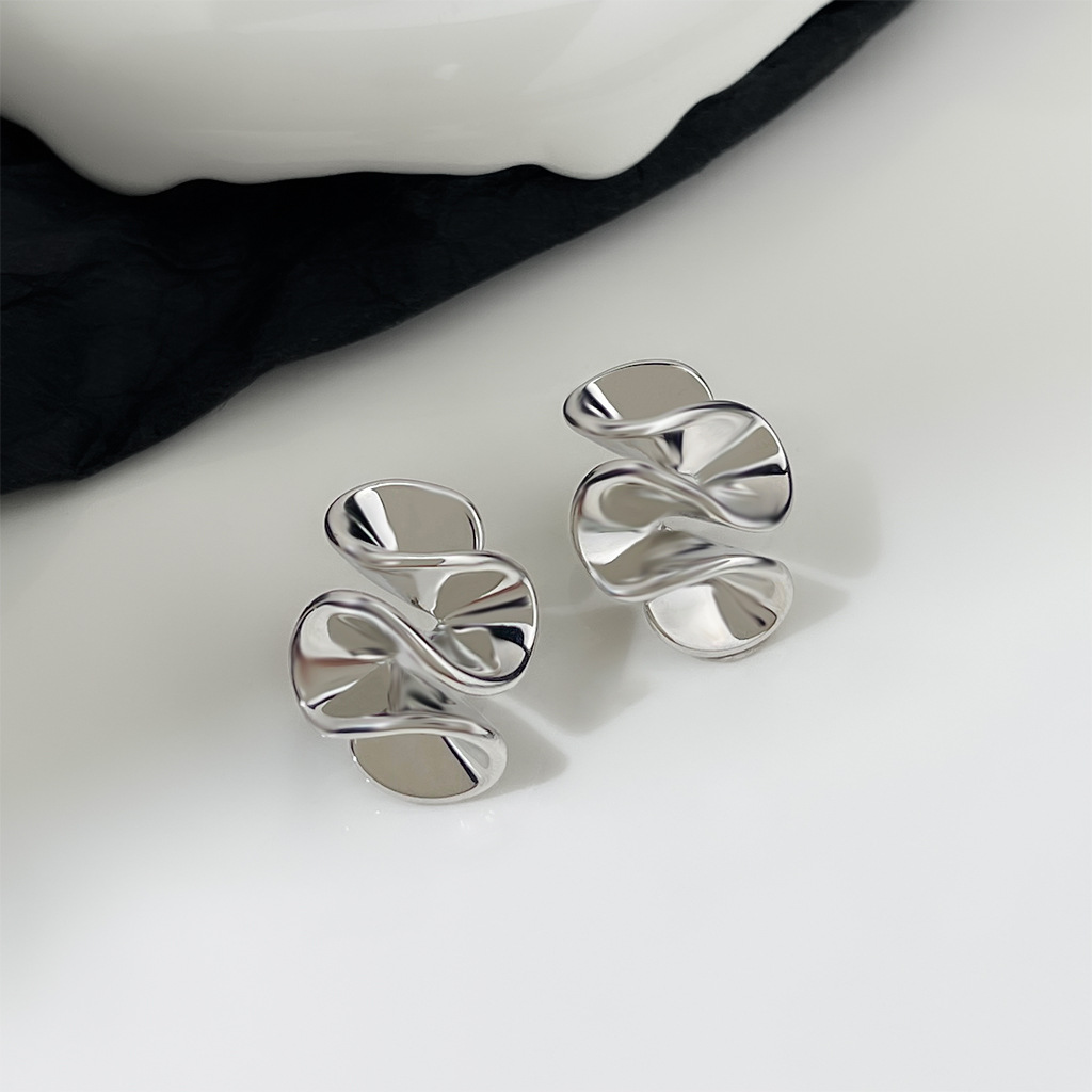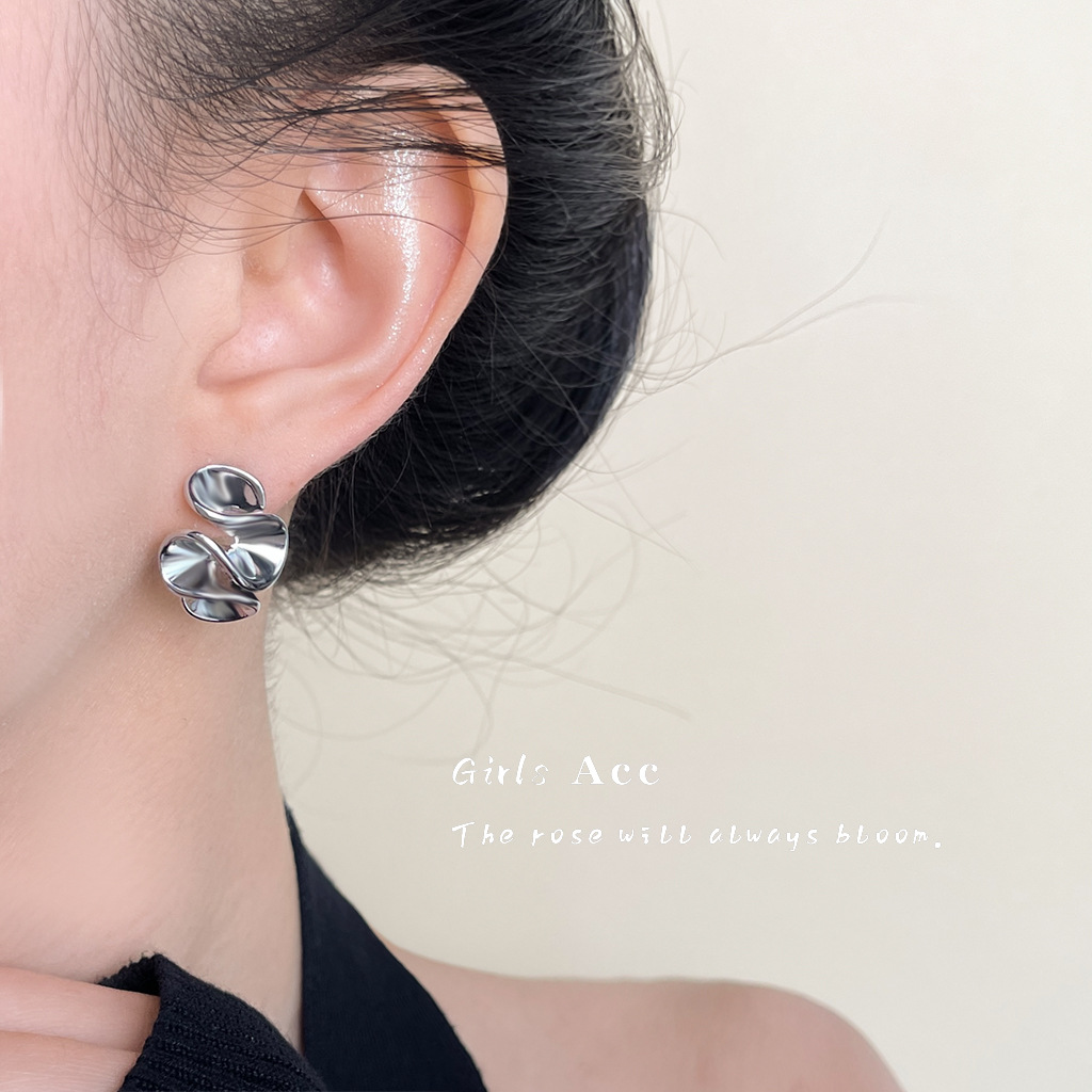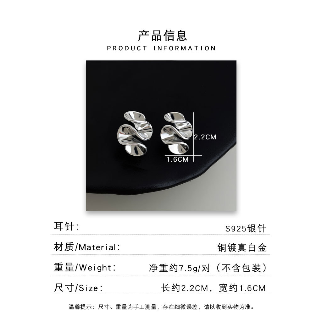 镀真金个性冷淡风褶皱耳环轻奢风光面几何耳钉时尚通勤高级感耳饰