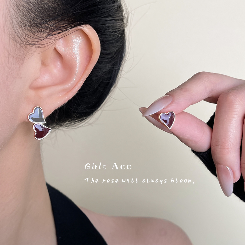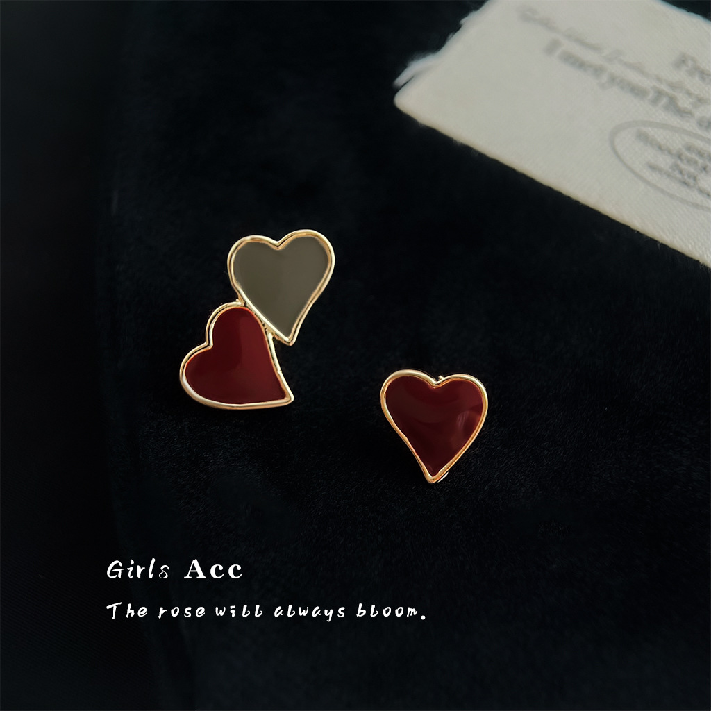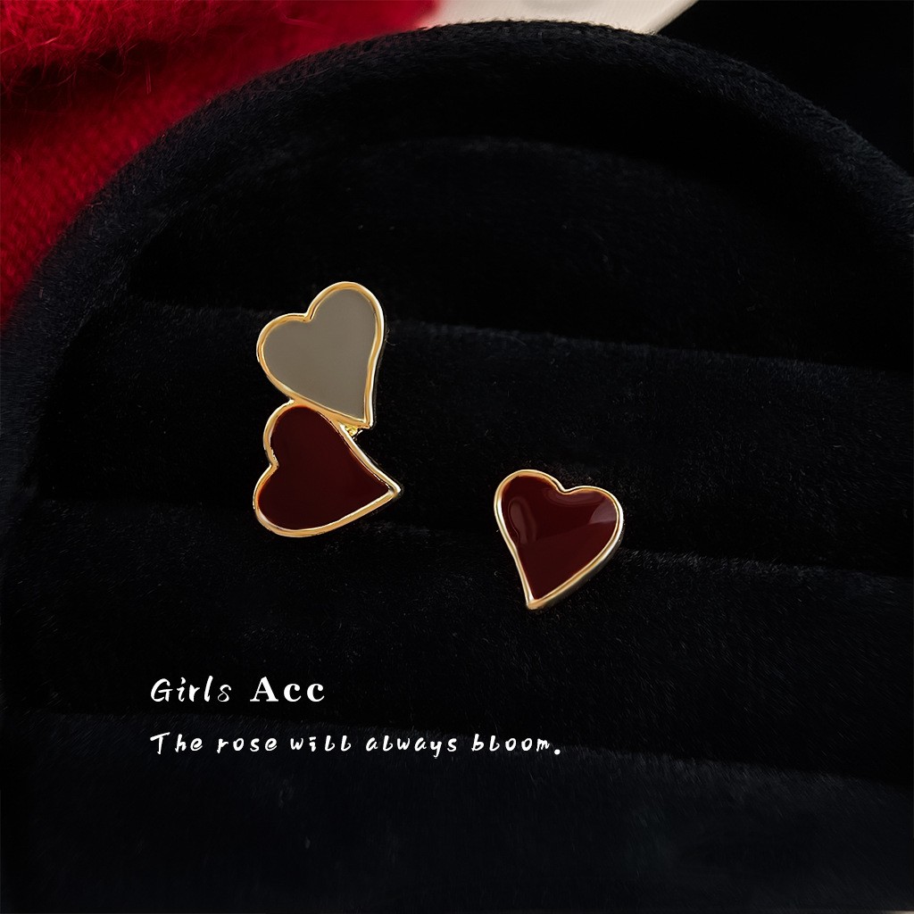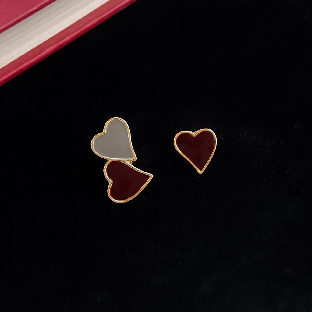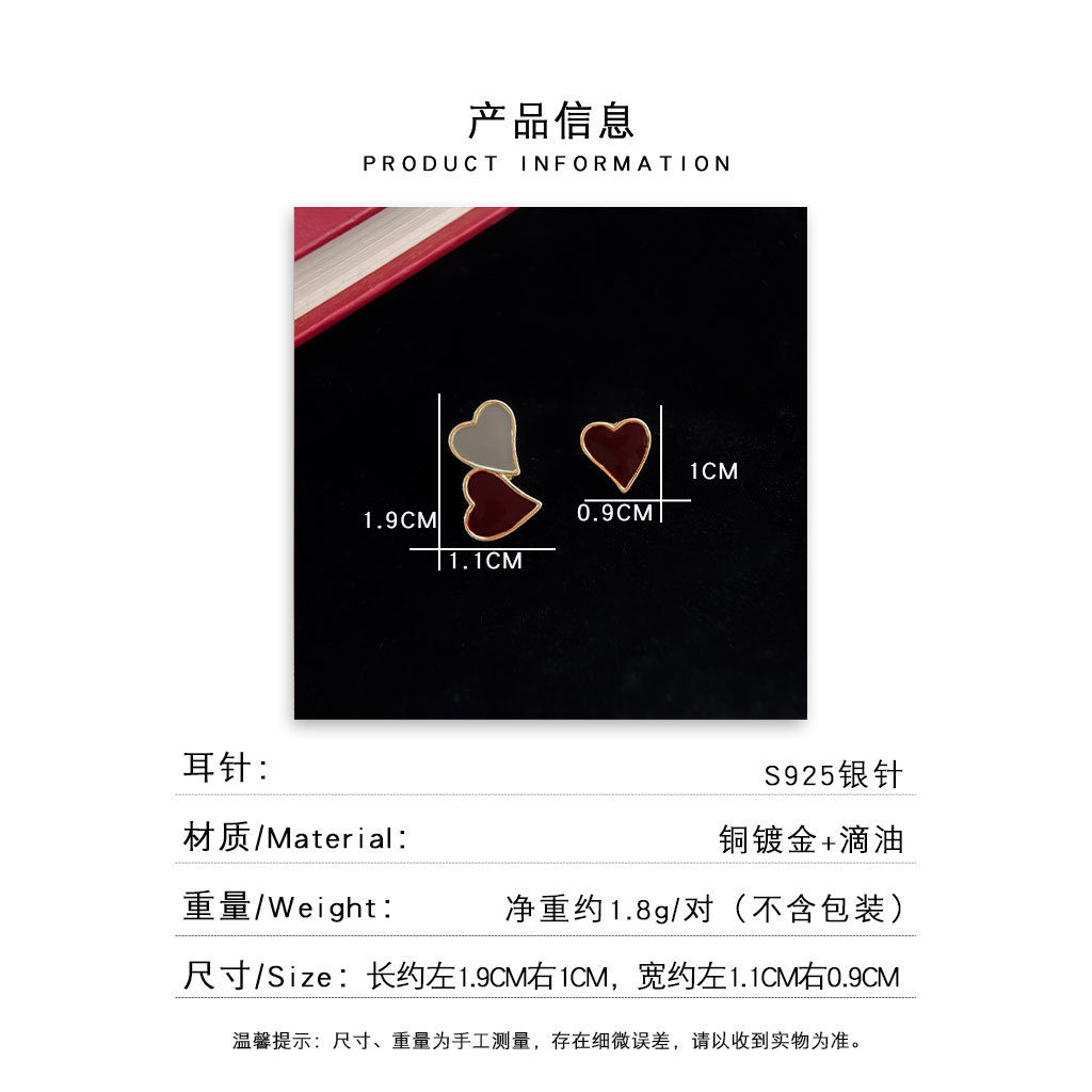 个性不对称爱心耳环时尚桃心滴油耳饰文艺复古港风气质耳钉高级感