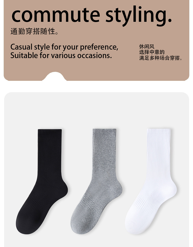 袜子女士秋冬中筒袜纯棉防臭吸汗长袜女毛巾底加厚保暖运动袜棉袜