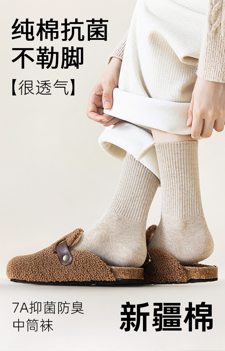 袜子女纯棉中筒袜春保暖女士长袜秋冬厚款长筒无骨棉袜批发