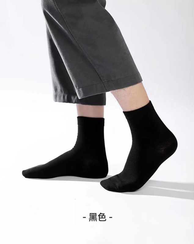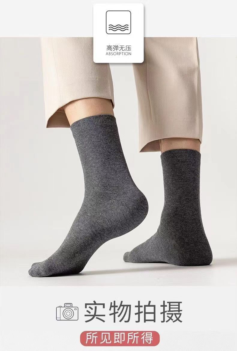 男中筒棉袜秋冬季纯色高腰透气长袜款商务中筒袜防臭棉