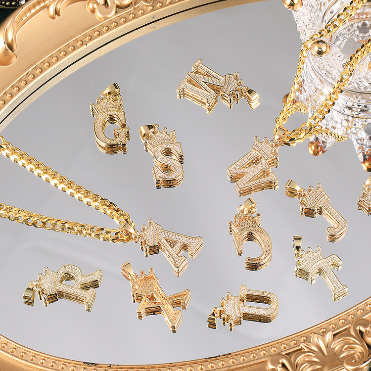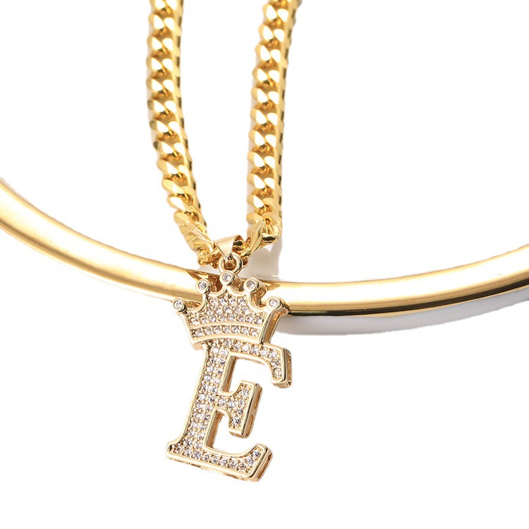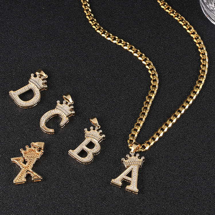 欧美时尚饰品皇冠项链锆石字母项链男皇冠吊坠小众不锈钢字母项链