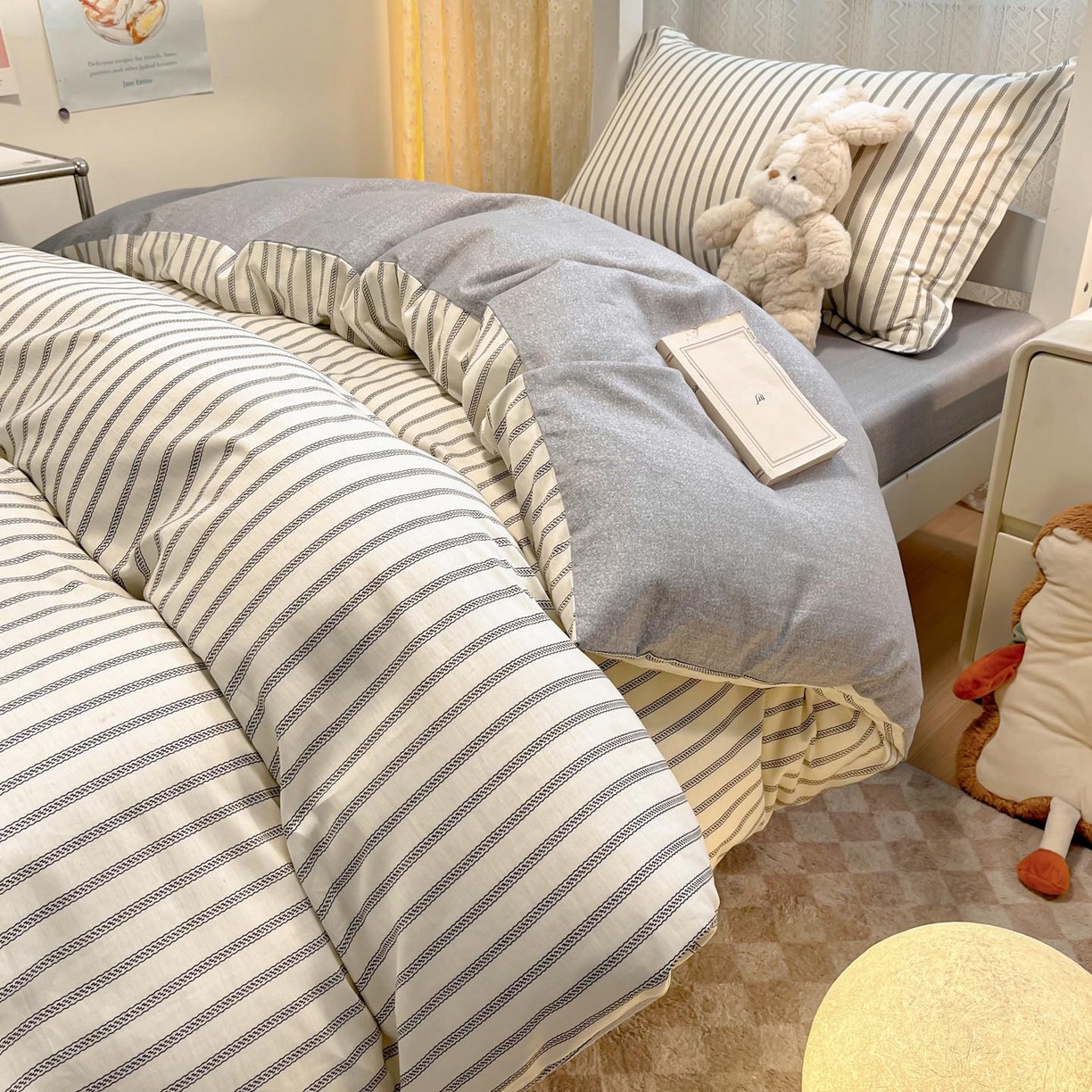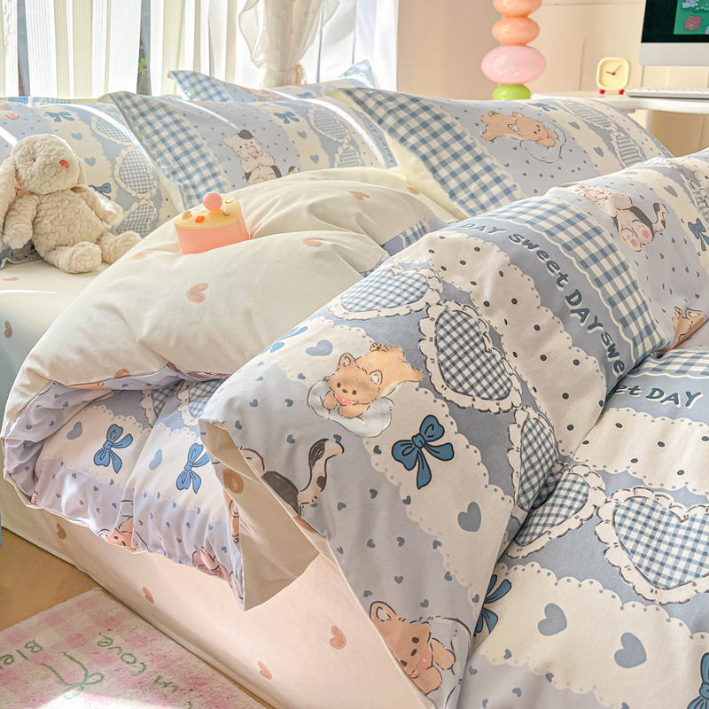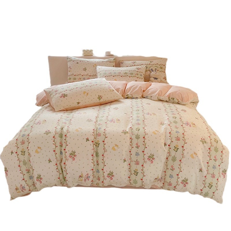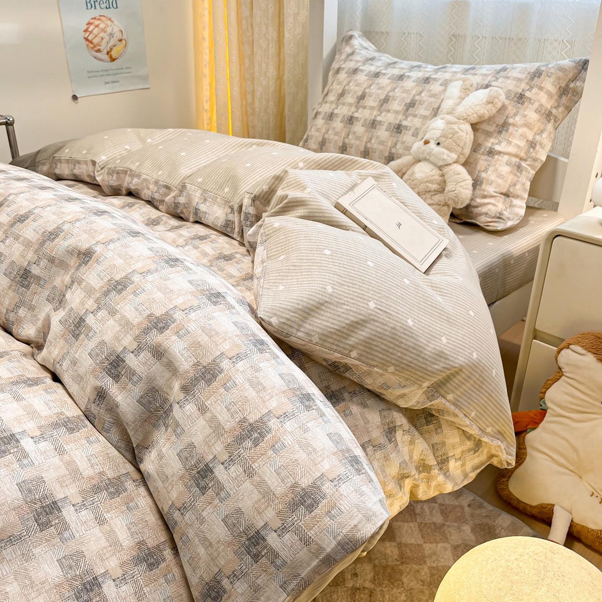 ins新款纯棉四件套全棉床上用品床单被套学生宿舍单人床笠三4件套