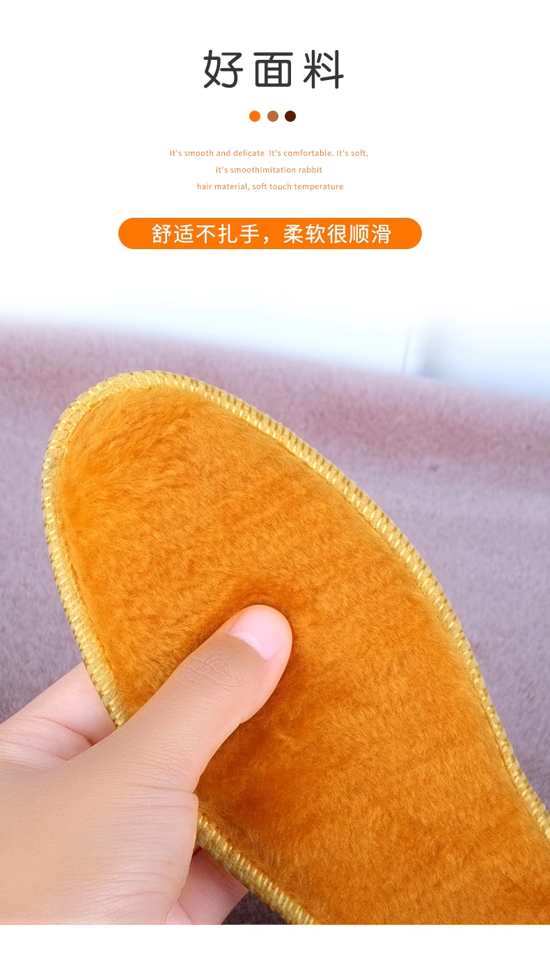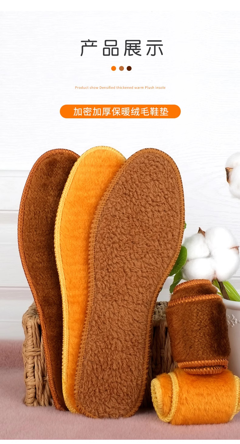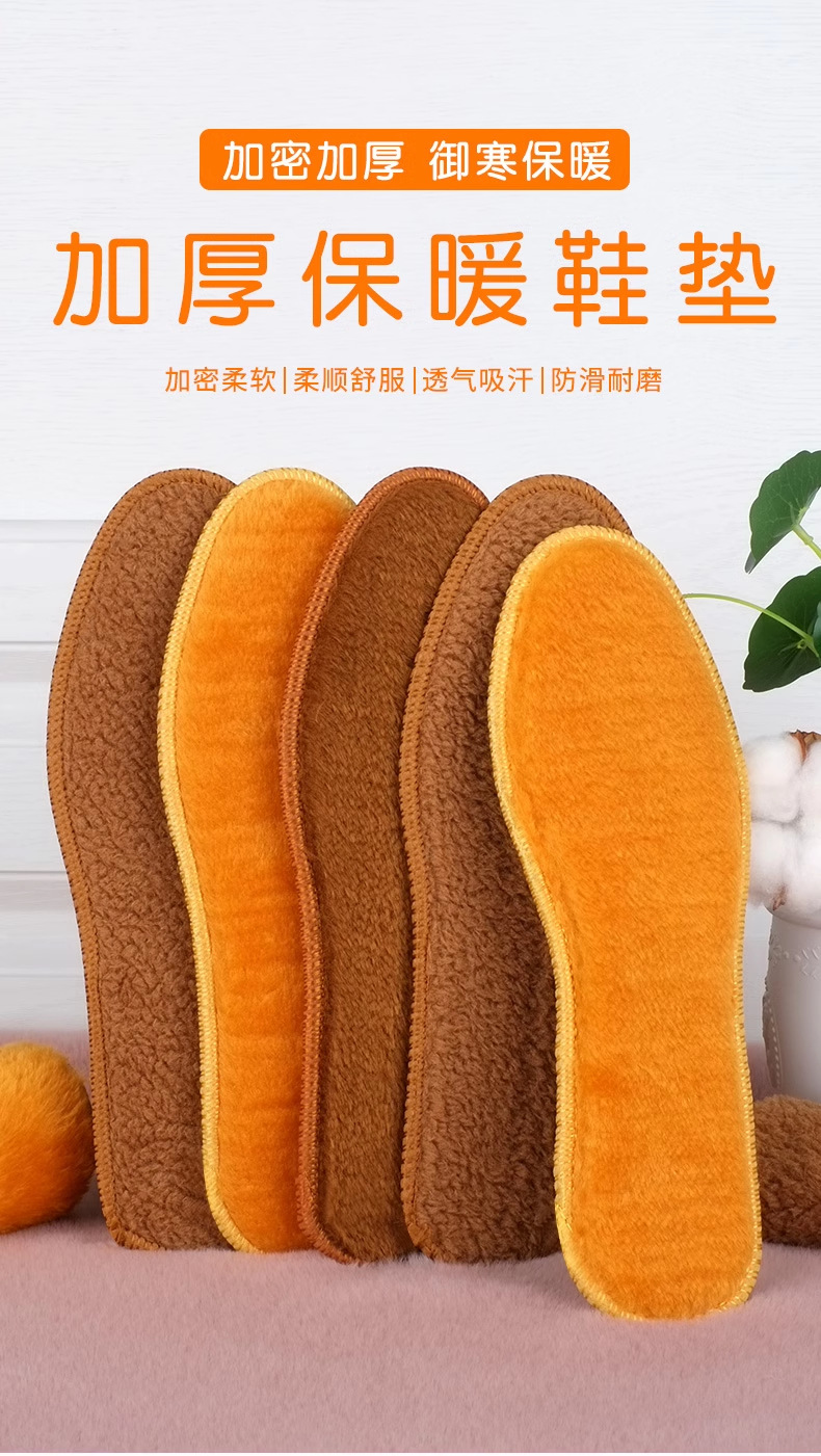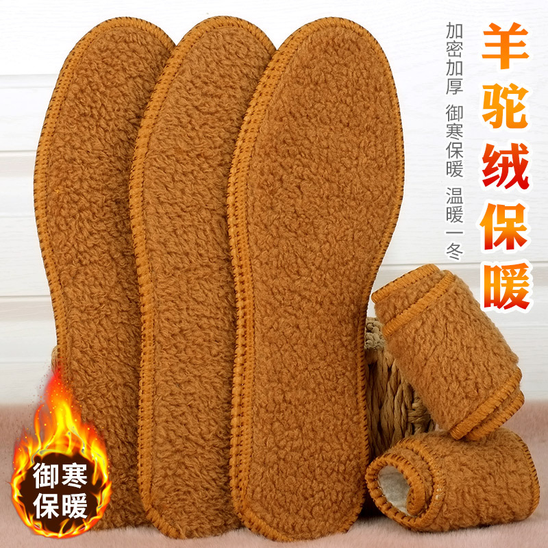 鞋垫冬季加厚加绒保暖鞋垫抗寒舒适透气吸汗皮毛一体羊驼绒棉鞋垫