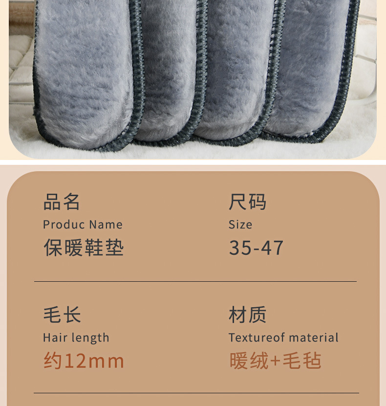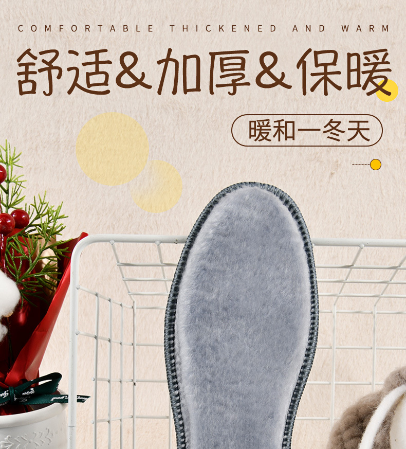鞋垫软底不累脚冬季保暖鞋垫加绒加厚蓄热防寒软弹吸汗毛毡鞋垫