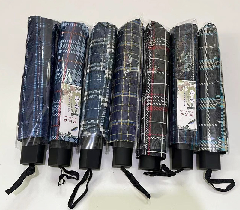 供应清新10k涤丝格子男女晴雨两用折叠太阳伞广告logo